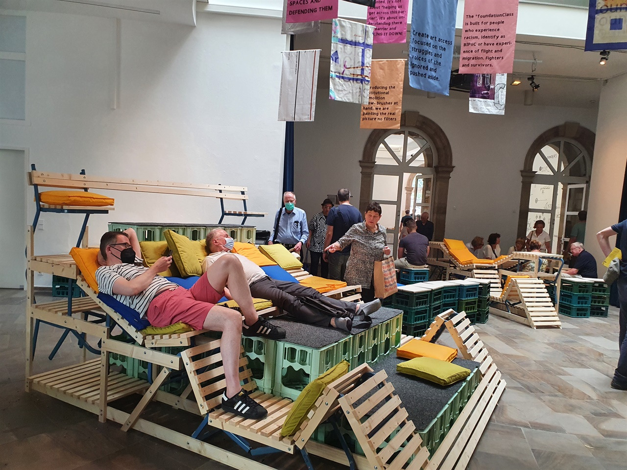 ▲ Fridericianum 미술관에 설치된 작품겸 사람들이 쉴수 있는 휴식공간,스페셜 교실,아트그룹 foundationClass Berlin ⓒ 김중희