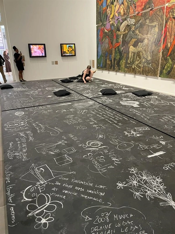 ▲ Friedrichcianum 미술관에 설치 되어 있는 작품 바닥 에 누구나 분필로 그림을 그리거나 글자를 적어 넣을수 있다. ⓒ 김중희