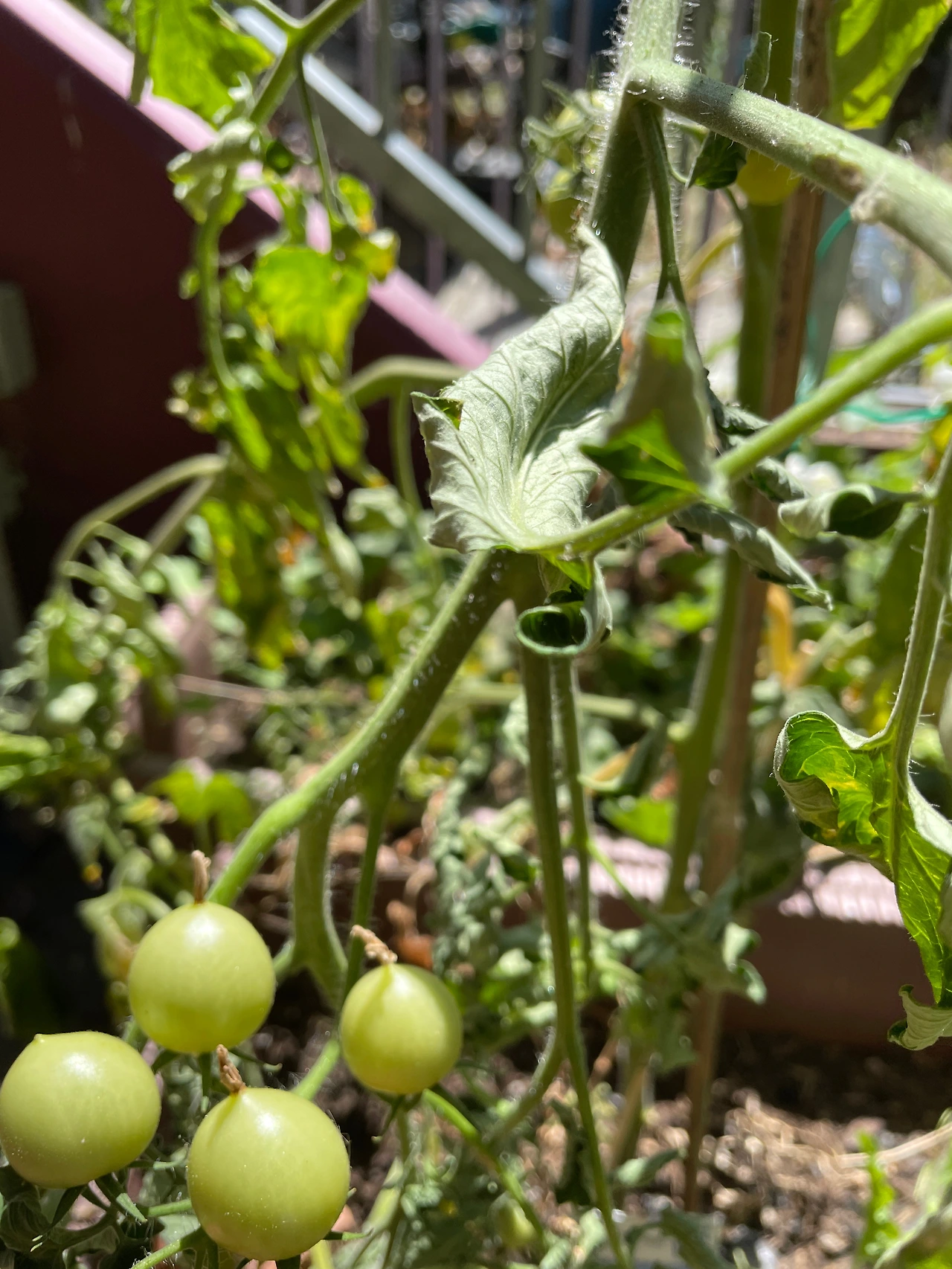 토마토는 다른 채소들에 비해 손이 많이 간다. 마른 잎을 수시로 떼어주어야 하고 물 부족할까 거름 부족할까 챙겨 가며 조금 자라면 줄기가 똑바로 못 자라고 휘어질까 그때마다 줄기를 펴주고 묶어주어야 한다.