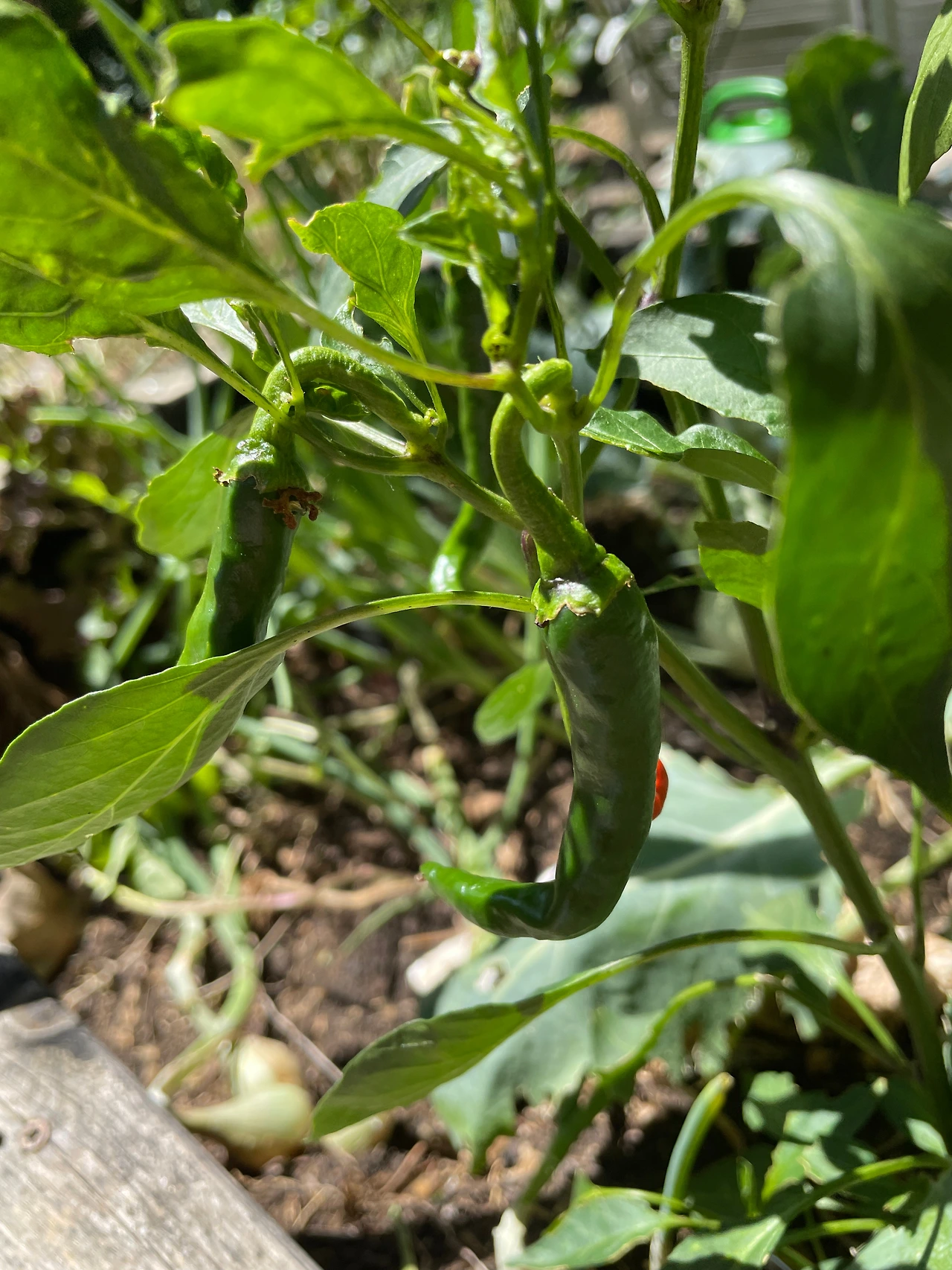 그리고 텃밭 구석에 심어 놓았던 고추도 꽃피고 나더니 바로 초록의 고추가 달렸다.