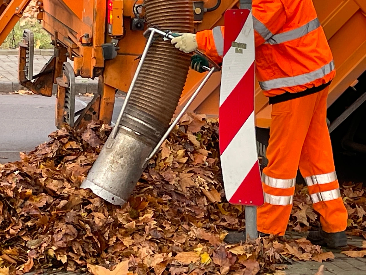 한 명이 등에 가방처럼 맨 청소기 비슷하게 생긴 기계로 붕붕 거리며 낙엽을 한쪽으로 모으면 그것을 다른 한 명은 앞쪽에 빗자루와 쓰레바퀴 같은 것이 달린 차로 쓸어 담는다.