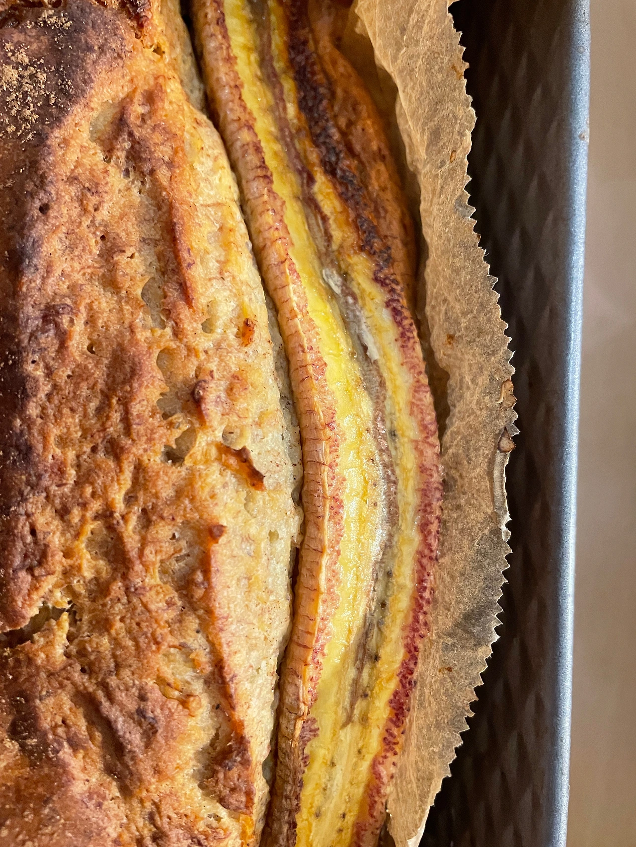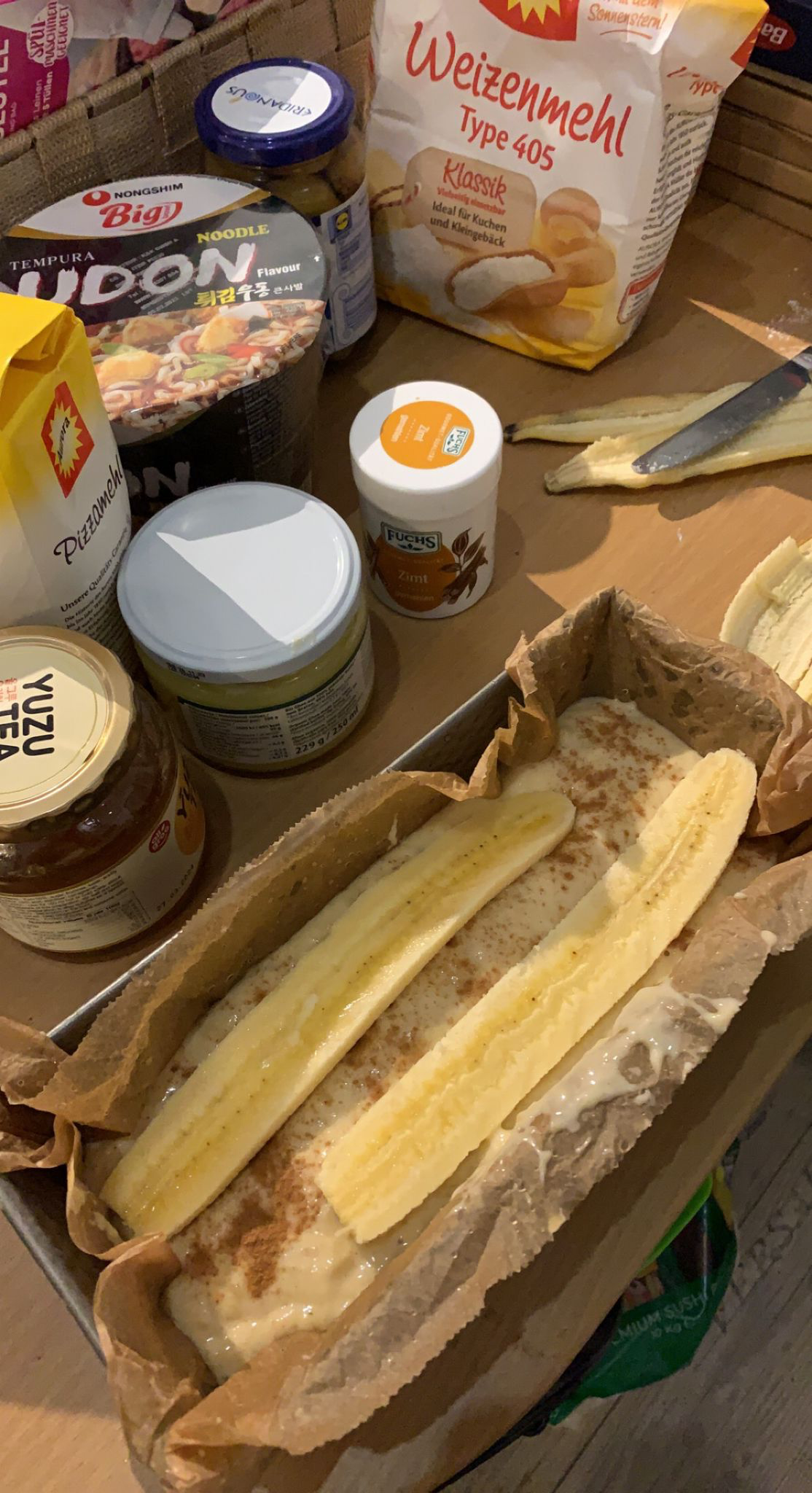 바나나를 잘 으깨고 밀가루와 우유, 계란, 버터, 계핏가루 등을 넣어 케이크 반죽을 만들어 두었다.