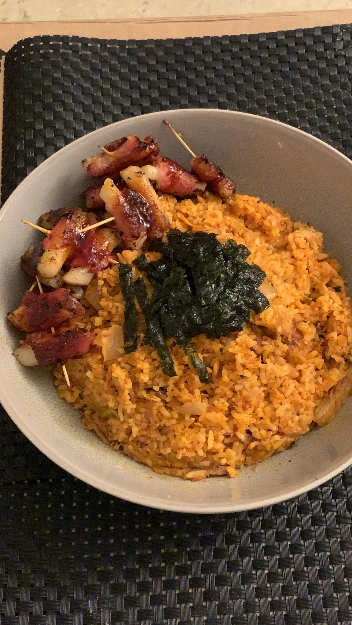 집에 오기 전 날에도 김치볶음밥에 떡꼬치 까지 해 먹었다며 톡으로 인증 사진을 보내 주었다.