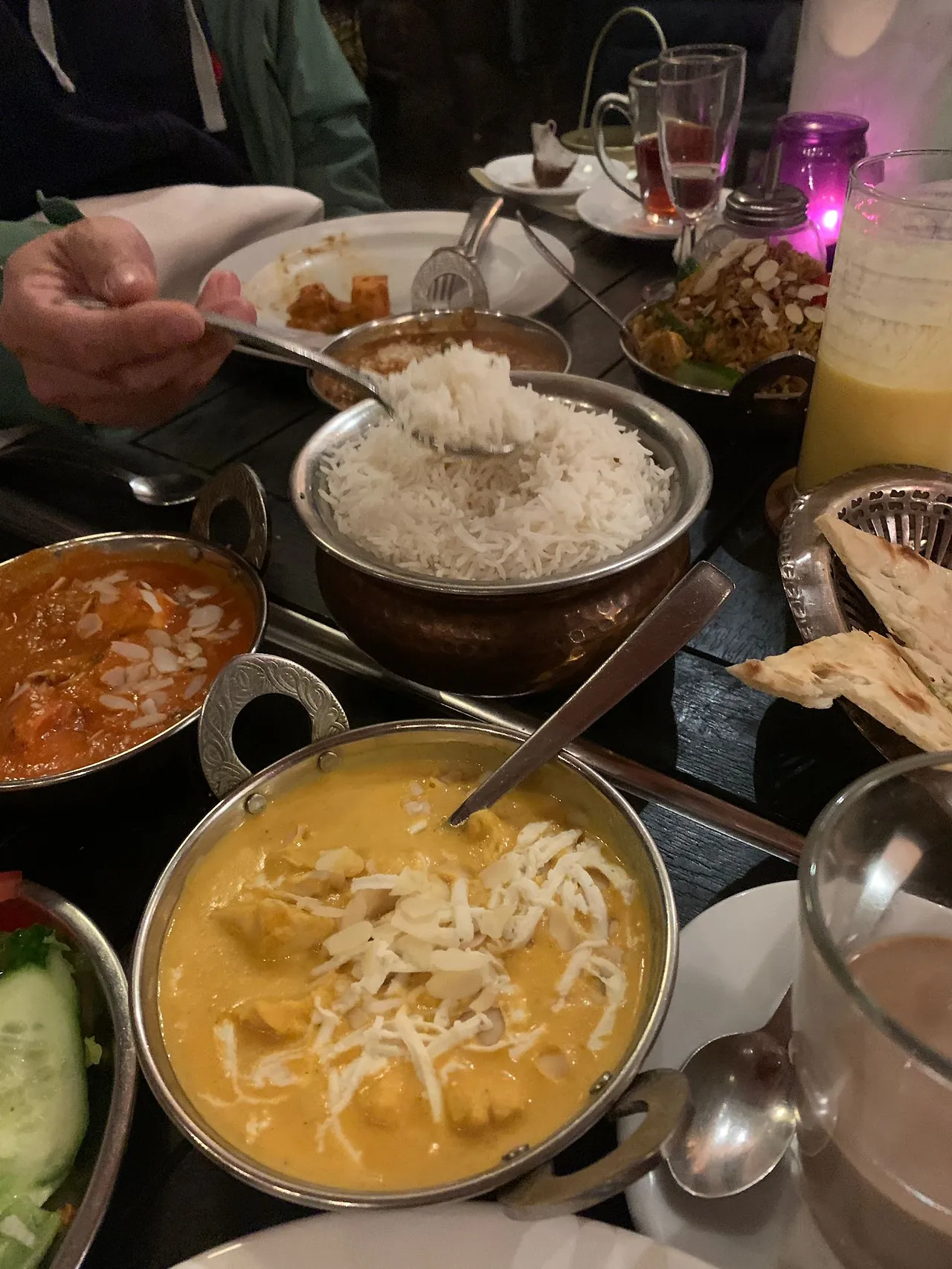 그렇다, 주문한 저녁이 왔다. 버터 치킨부터 채소만 들은 매운 카레까지 종류 별로 내려놓는 냄비에 따라 안에 뭐가 들어갔고 어떤 맛이라는 것을 아저씨는 일일이 설명을 해 주고는 춥지 않은지 음료가 더 필요하지는 않은지 나긋나긋 섬세하게 하나하나 다 확인하고 나서야 빈 쟁반을 들고 유유히 사라 졌다.