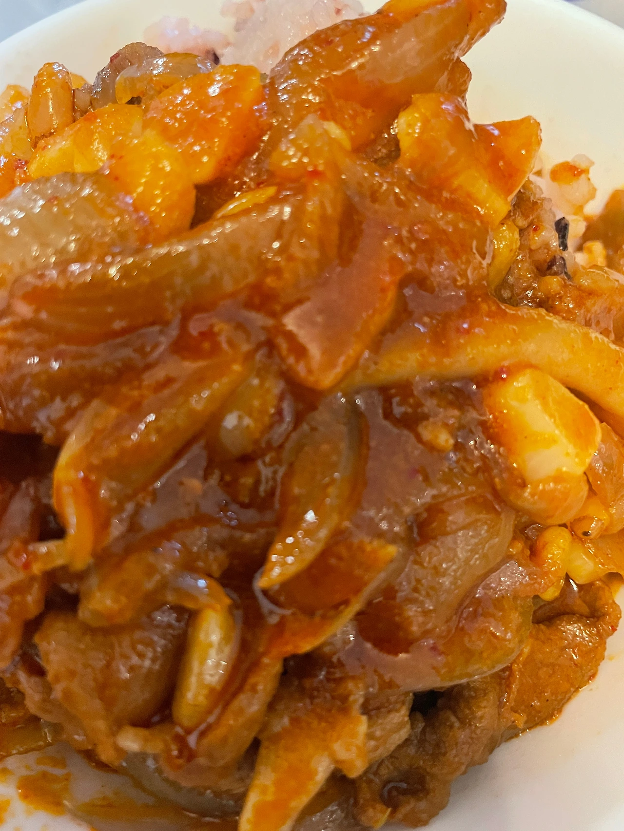 매콤 달콤 쫀득한 떡볶이는 아니었지만 김이 모락모락 나는 방금 지은 밥에 먹음직스레 올라간 오삼 불은 보기에도 정말 맛나 보였다.