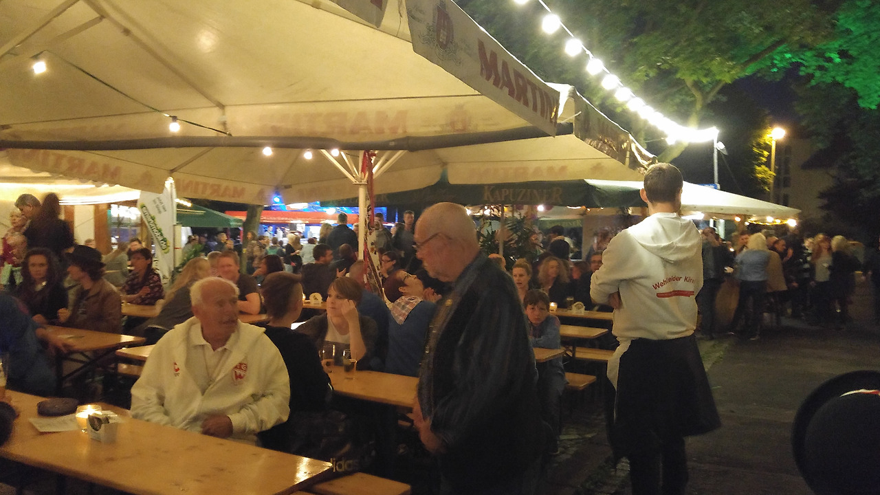 동네 축제를 기다 리는 사람들이