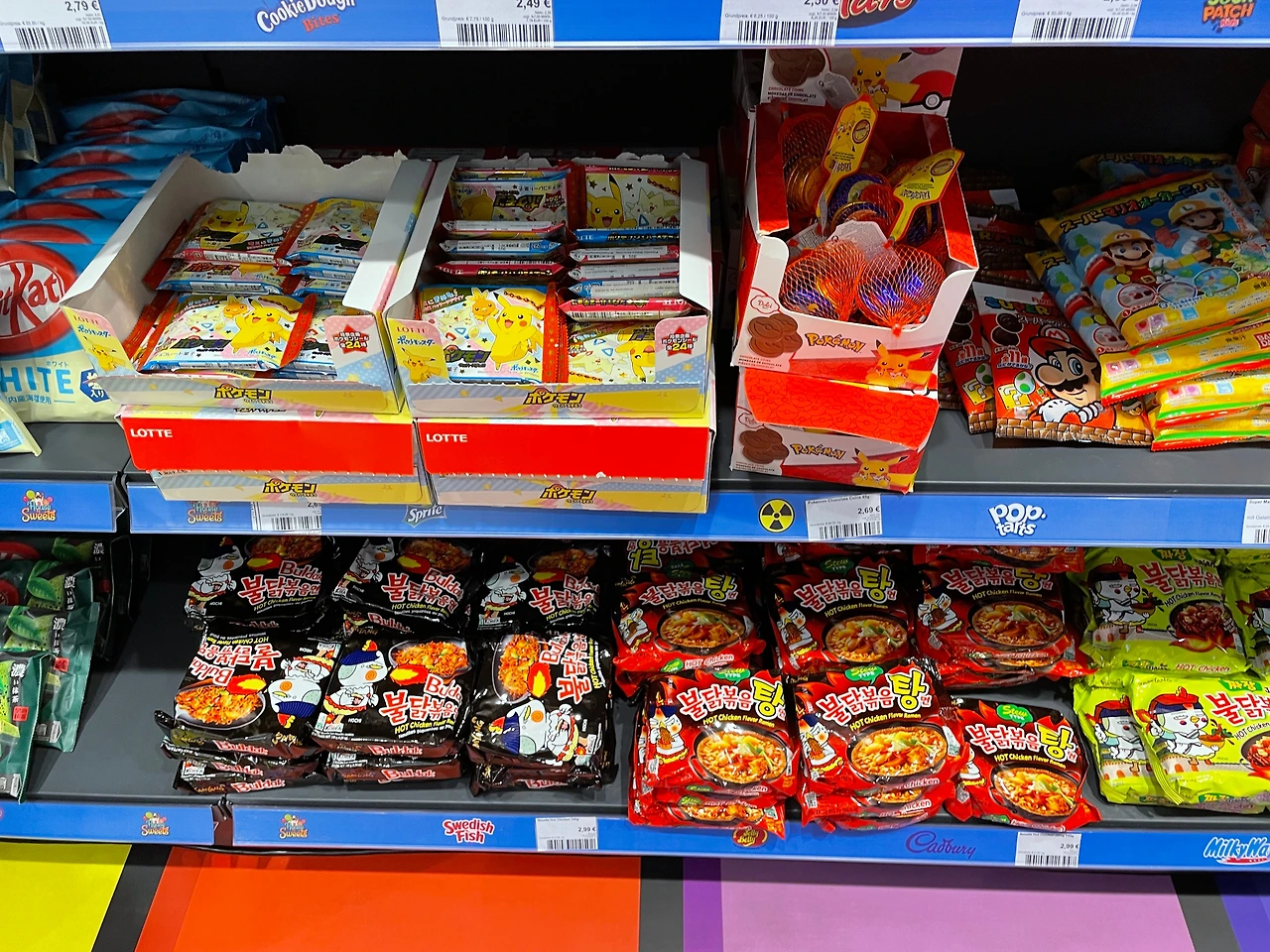 잠깐, 사탕가게에 라면은 조금 생뚱맞지 않나? 싶다가 라면땅 과자도 있고 이 동네에서는 이 매운 라면 들이