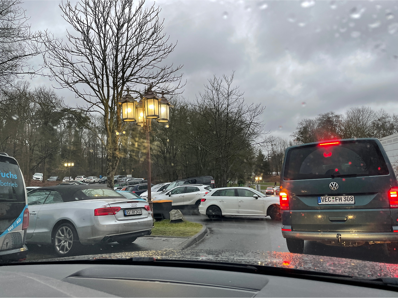 도착한 온천 수영장 근처 주차장에는 주차하려는 차 들로 난리 법석이었다.