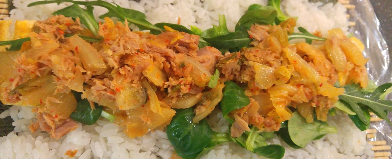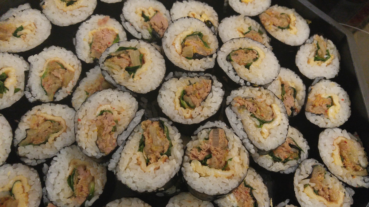 오늘의 맛보기 음식 넘버 2는 김치 참치 김밥. 집집마다 특별한 날을 위한 비장의 무기?