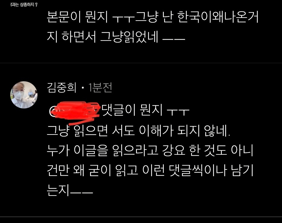 시간을 내서 읽었는데 본인이 상상하던 것을 끝내 글에서 찾지 못했나 보다. 그럴 수 있다. 그러면 읽다 말면 되지 않은가? 뭐 하러 아까운 시간 내서 끝까지 읽고는 굳이 찾아와서 저런 댓글을 다는 걸까?
