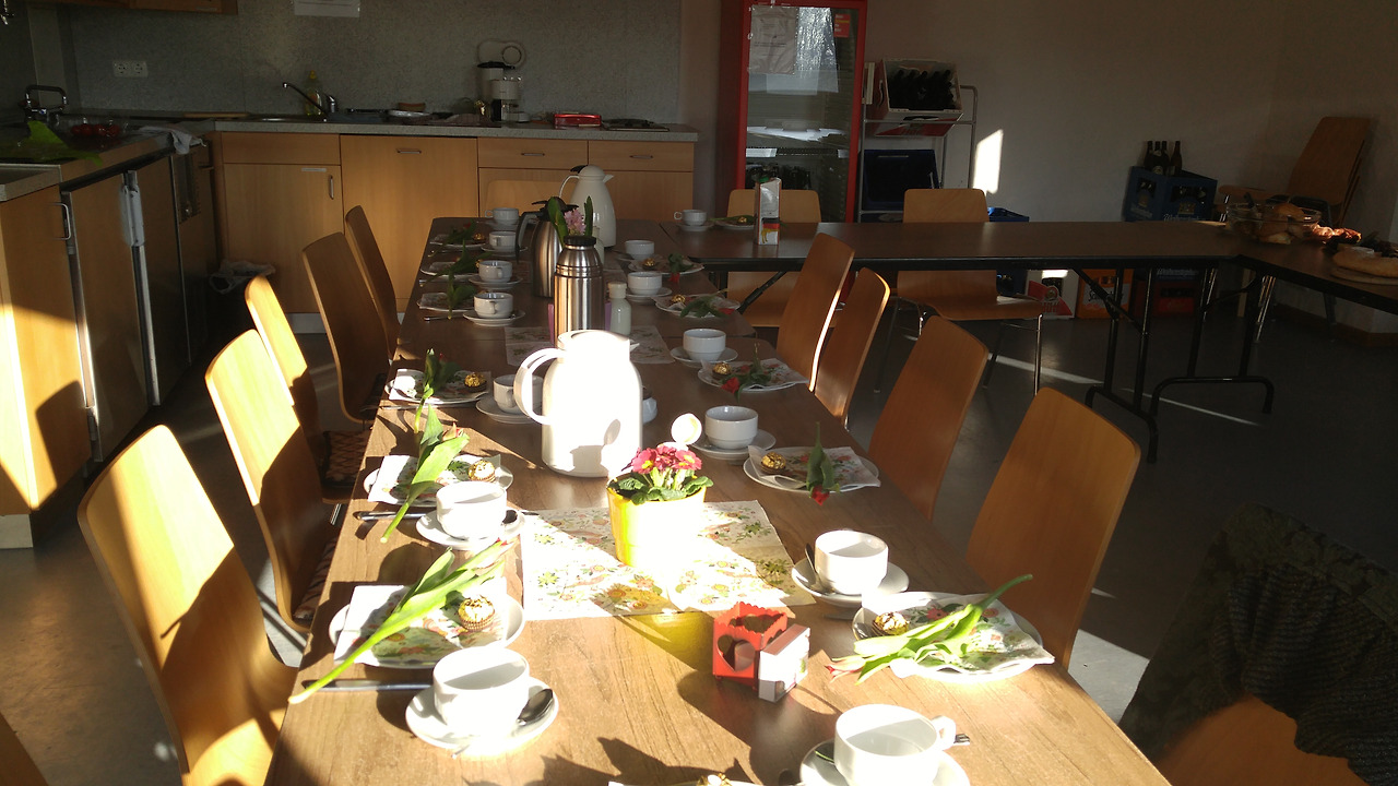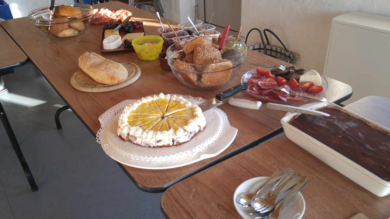 케이크 등등으로 클럽 하우스에 생일 상을 차린다.