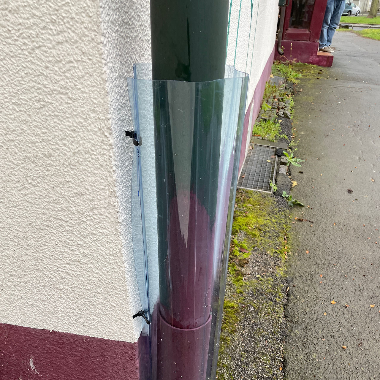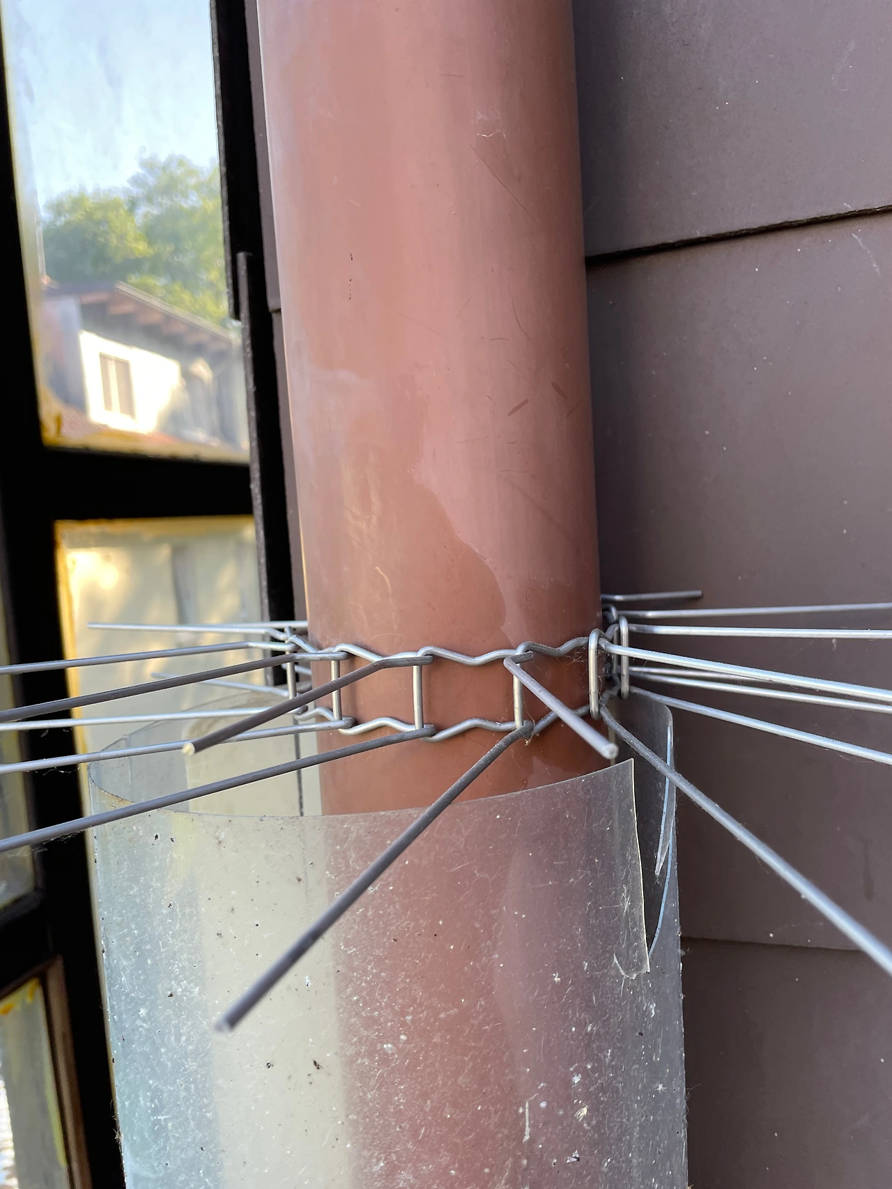 그래서 350유로나 들여서 (*한화로 약 50만 원 가까이 들여) 배수관 위쪽 두 곳에 방지템을 설치했다.(위쪽 중간의 사진)