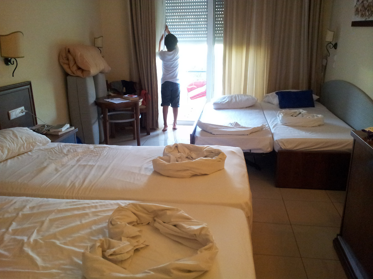 제법 근사해 보이는 호텔 외관에 비해 2인용 침실에 접이용 침대 두 개 더 구겨 넣고