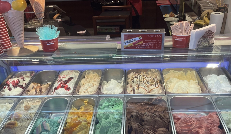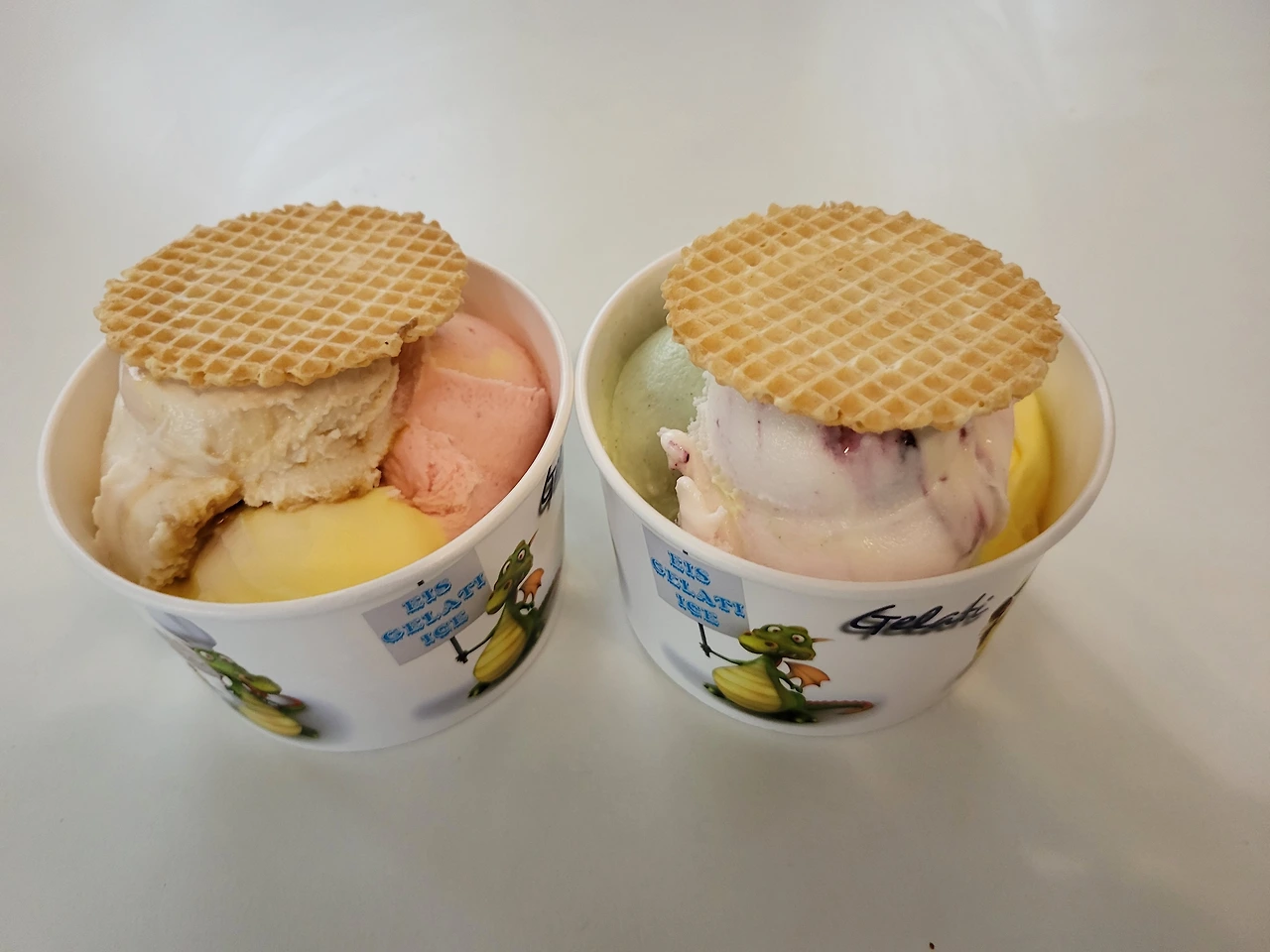 나는 마트 옆 젤라또 가게에서 아이스크림을 사기로 했다.