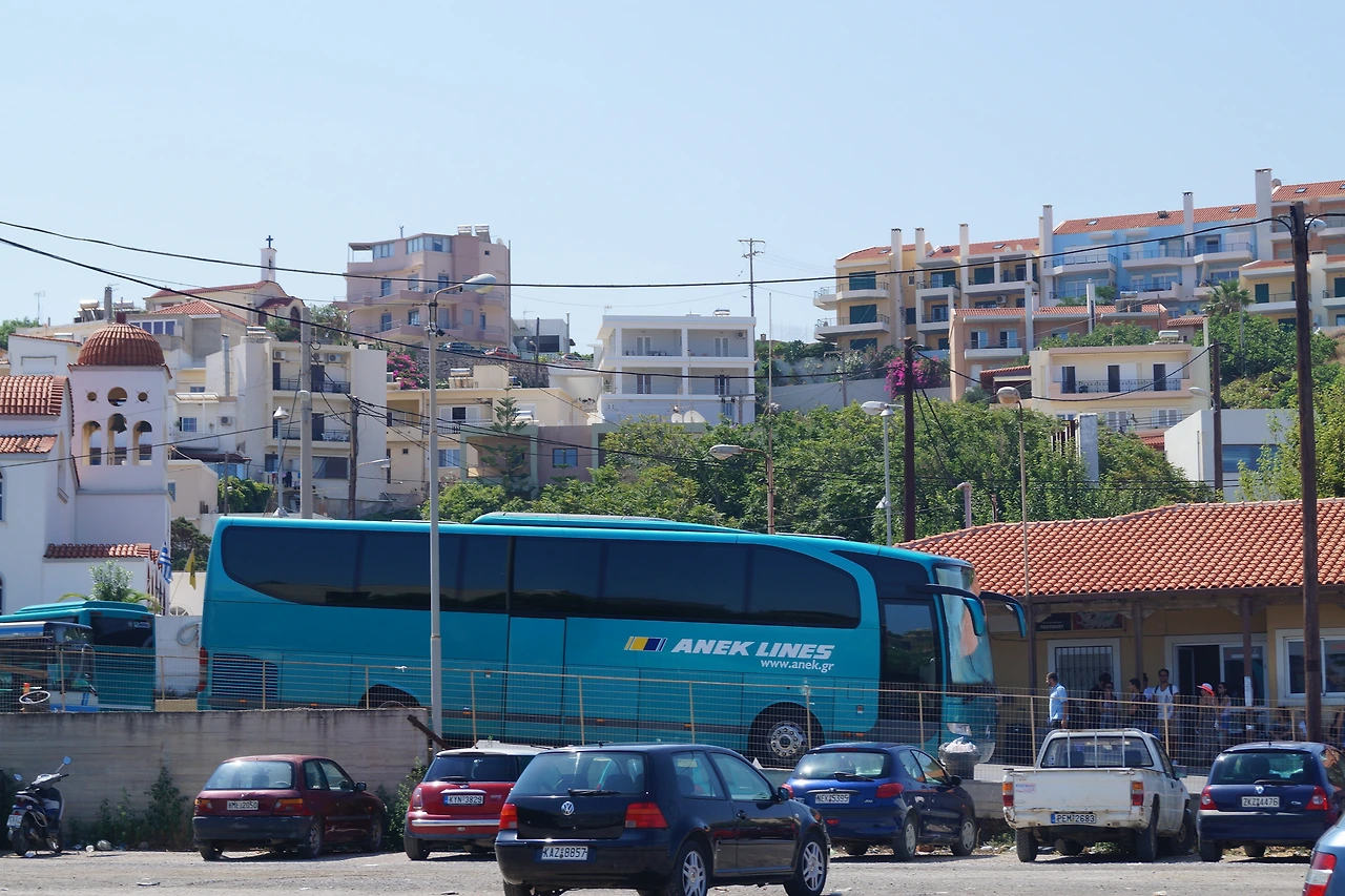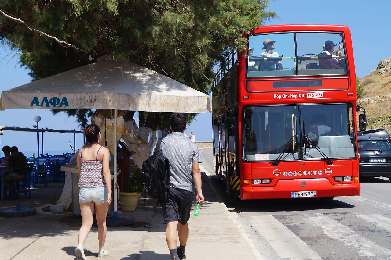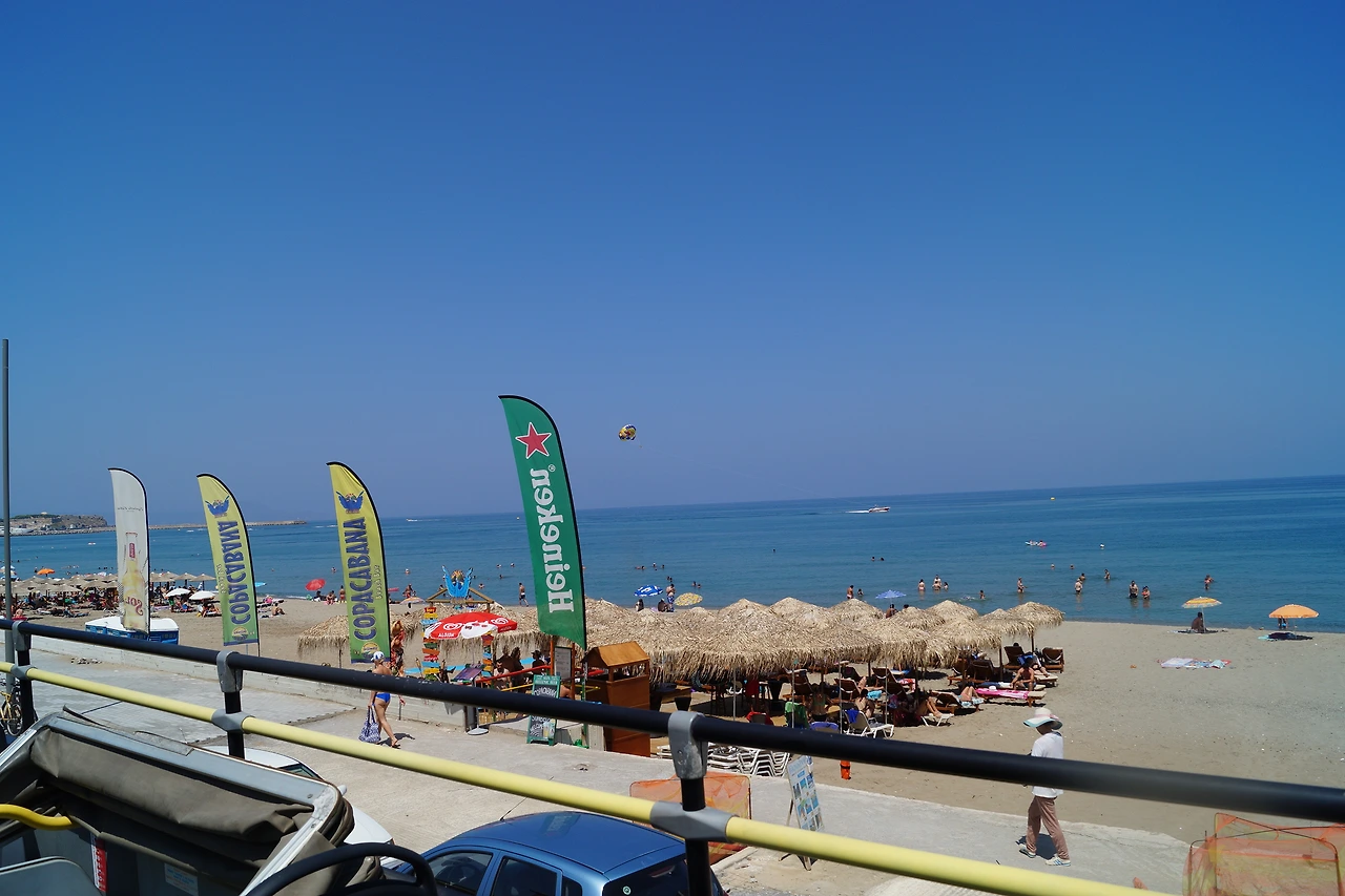 아이들을 달래 가며 여행객 들을 모아 관광버스로 크레타의 명소 구석구석을 두루