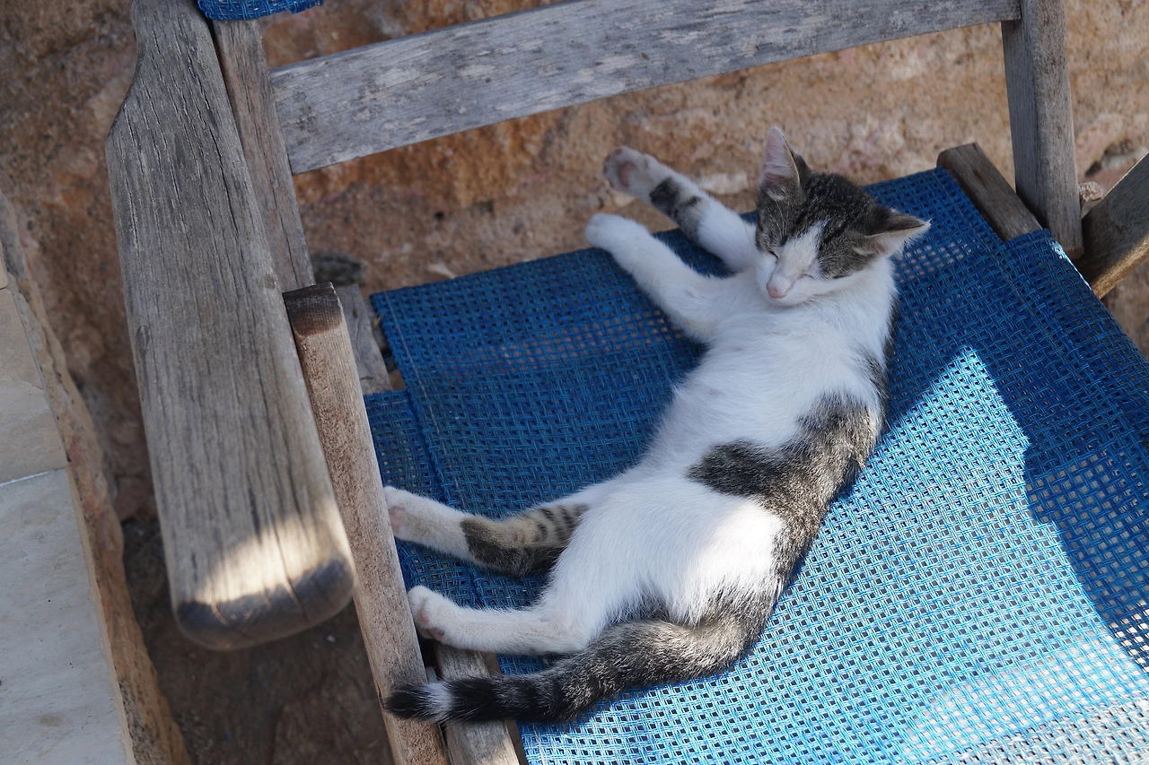 그늘진 곳 의자 위에서 세상 편하게 퍼질러 자고 있던 고양이도