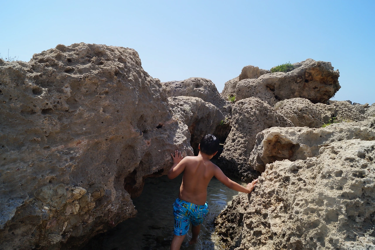 한편, 조개 껍데기를 모으고 싶어 하던 아이들은 바위 틈 사이 구석 구석을 누비며