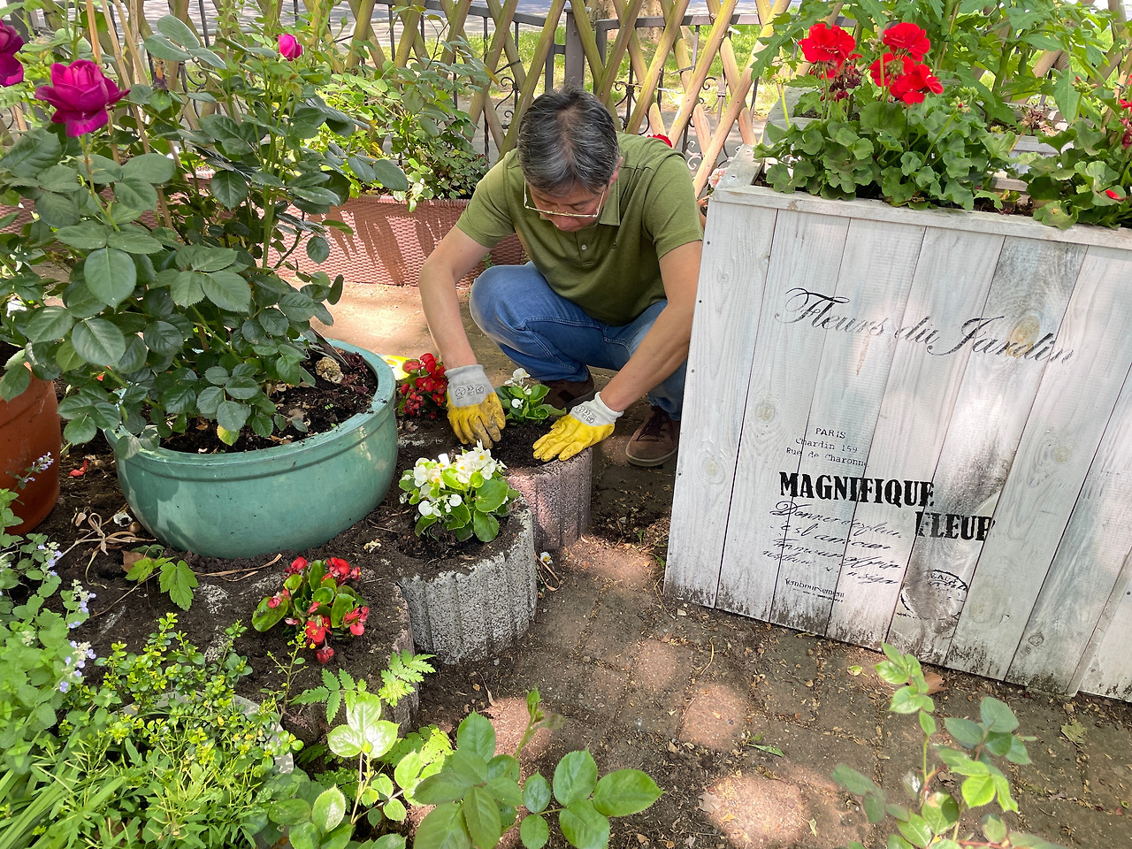 원래는 큰 화분에 심을 장미 하나만 사러 간 것이지만 간 김에? 베고니아 몇 개와 아직 이름을 외우지 못했지만 예쁜 여름꽃 몇 개를 더 담았다.
