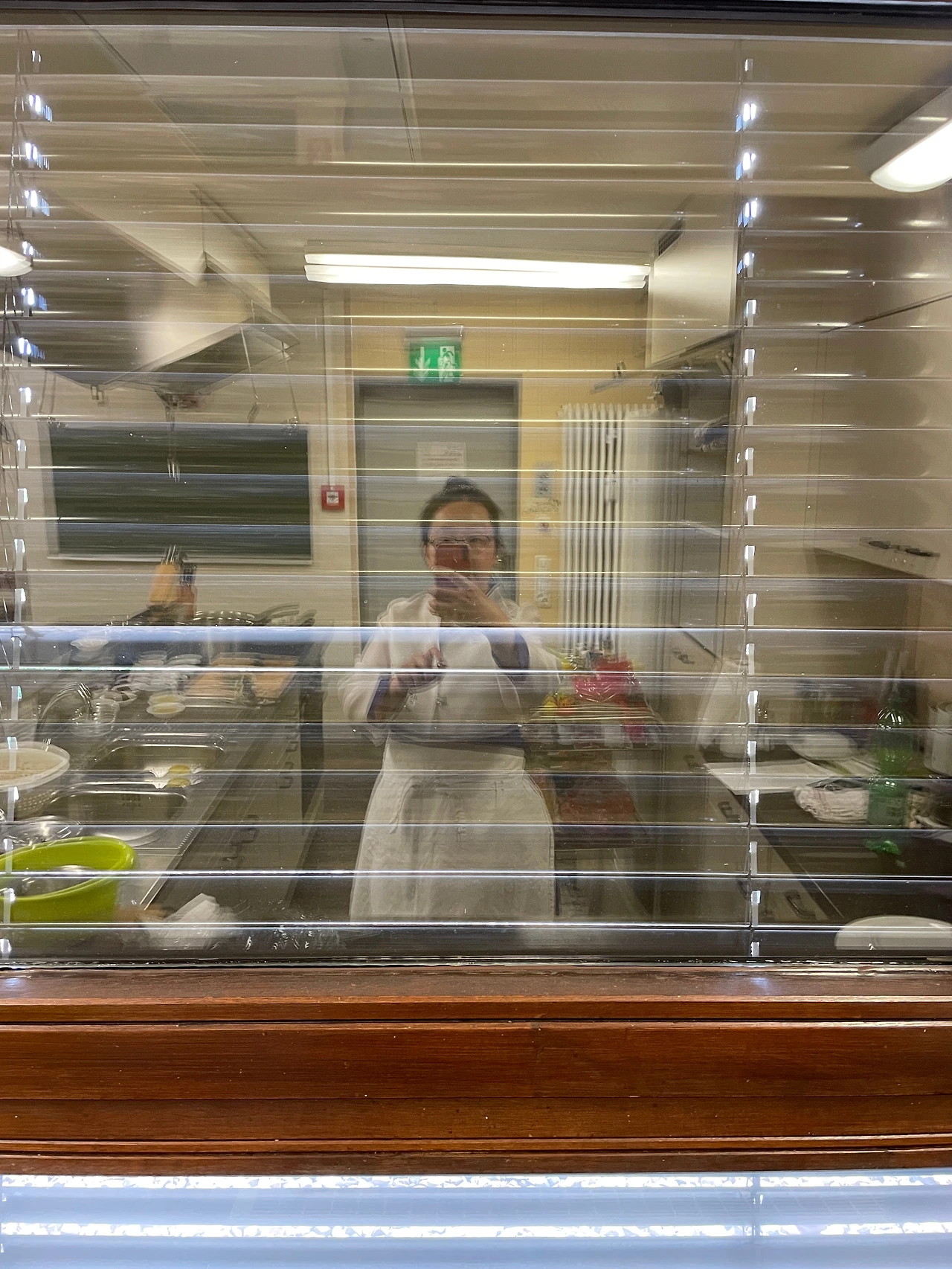 그 방은(위에 사진) 이론 수업을 하는 교실 겸 함께 만든 요리를 시식하는 식당이다 그곳의 탁자 위에 얌전히 올려놓고 온 기억났다.
