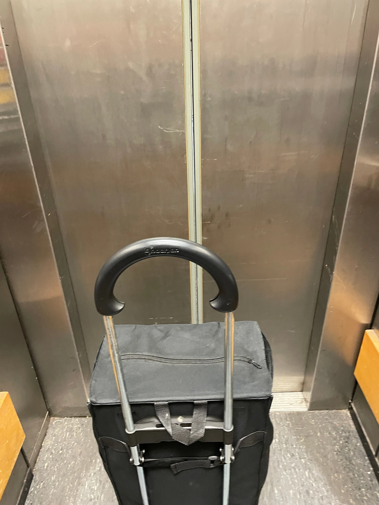 바퀴는 달렸으나 누가 봐도 시장 가방인 데다 핸디 캐리어처럼 핸들링하기가 쉽지가 않다.