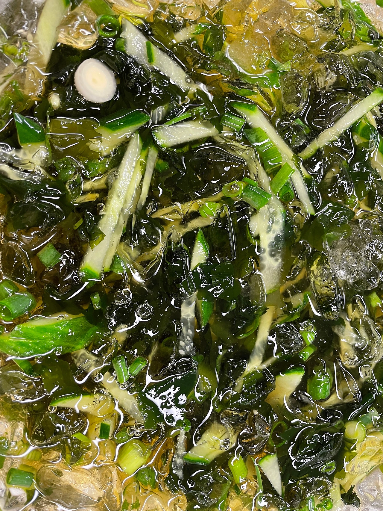 시간이 지나면서 얼음이 녹으며 살얼음 낀 것 같은 느낌의 시원한 오이냉국이 탄생했다.