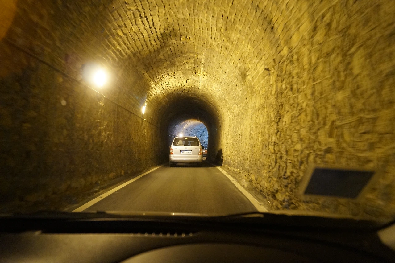 좁은 동굴 같은 터널을 지나 밖으로 나오니 그 꺾어진 좁은 도로에