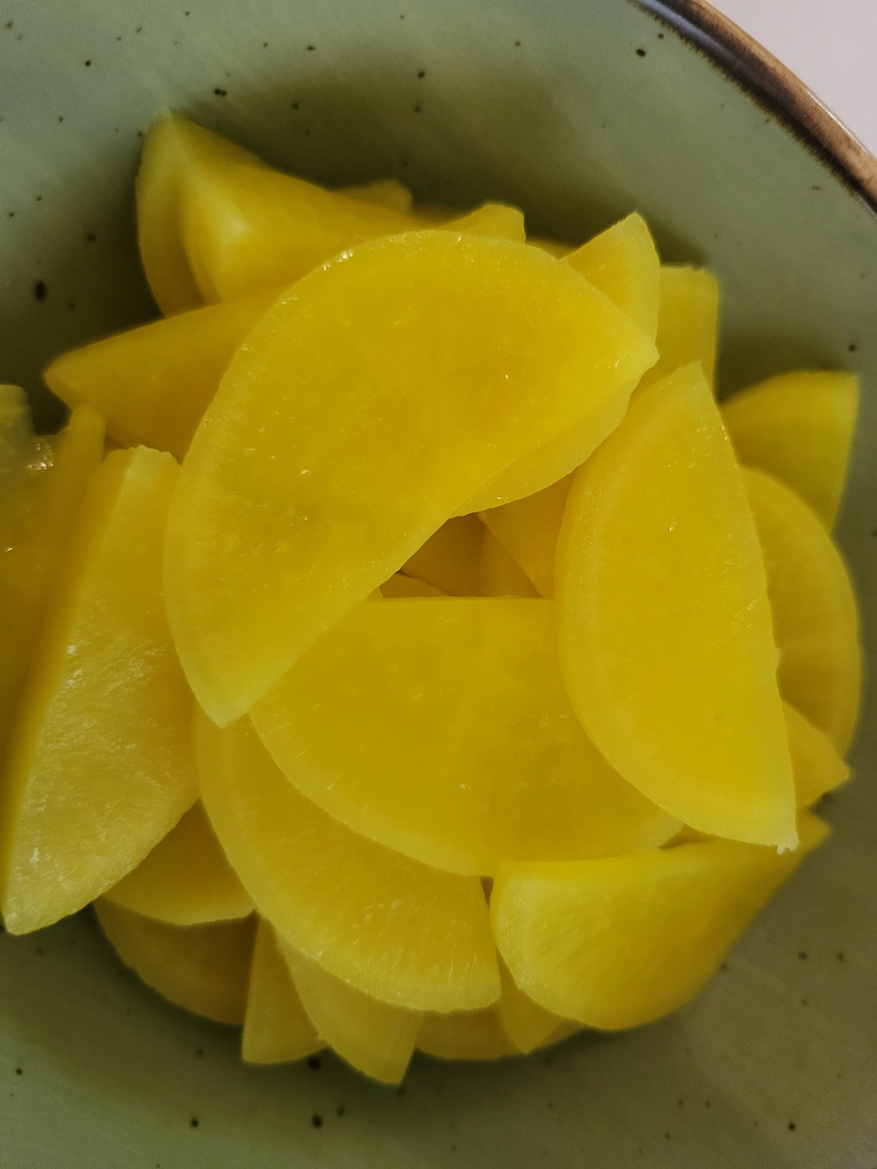 고춧가루도 살짝 얹어 얼큰한 국물에 새콤달콤한 노란 단무지까지 곁들인 라면은