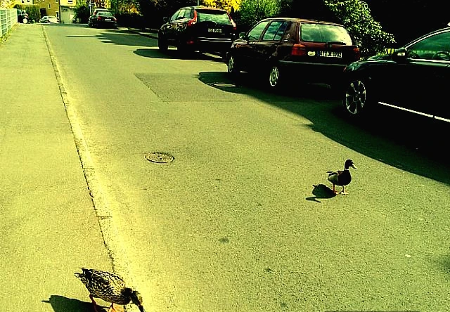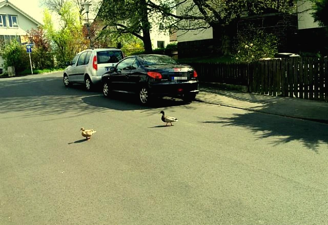 그래도 멀리서 저 작은 오리 들이 설마 찻길을 활보 하리라 예상 하고