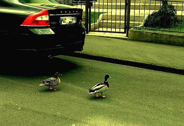 찻길을 뒤뚱뒤뚱 걸어 활보 하고 있다니 정말 신기한 광경 이 아닐수 없었다.