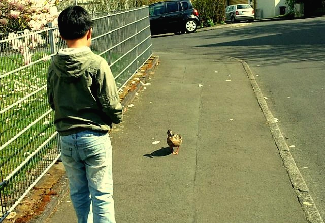 우리가 아무리 오리 들과 눈을 마주 치며 얘들아 니들 집이 어디니? 차다니는 길 한 복판 에서