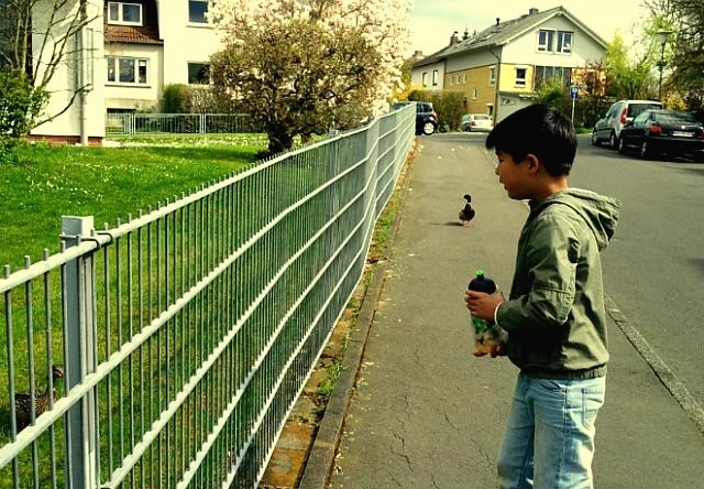 그.런.데 금방 따라 남의집 마당 안으로 들어 갈것 같던 남자 오리가