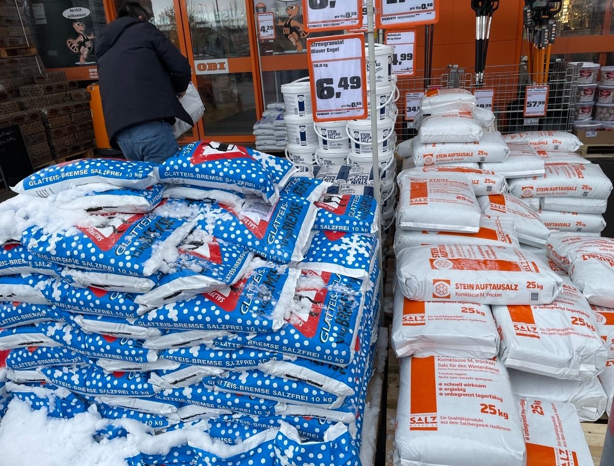 길에 뿌리는 미끄럼 방지용 소금은 커다란 통에 5kg 담긴 것도 있고 10kg, 25kg 포대에 담긴 것들도 있다.