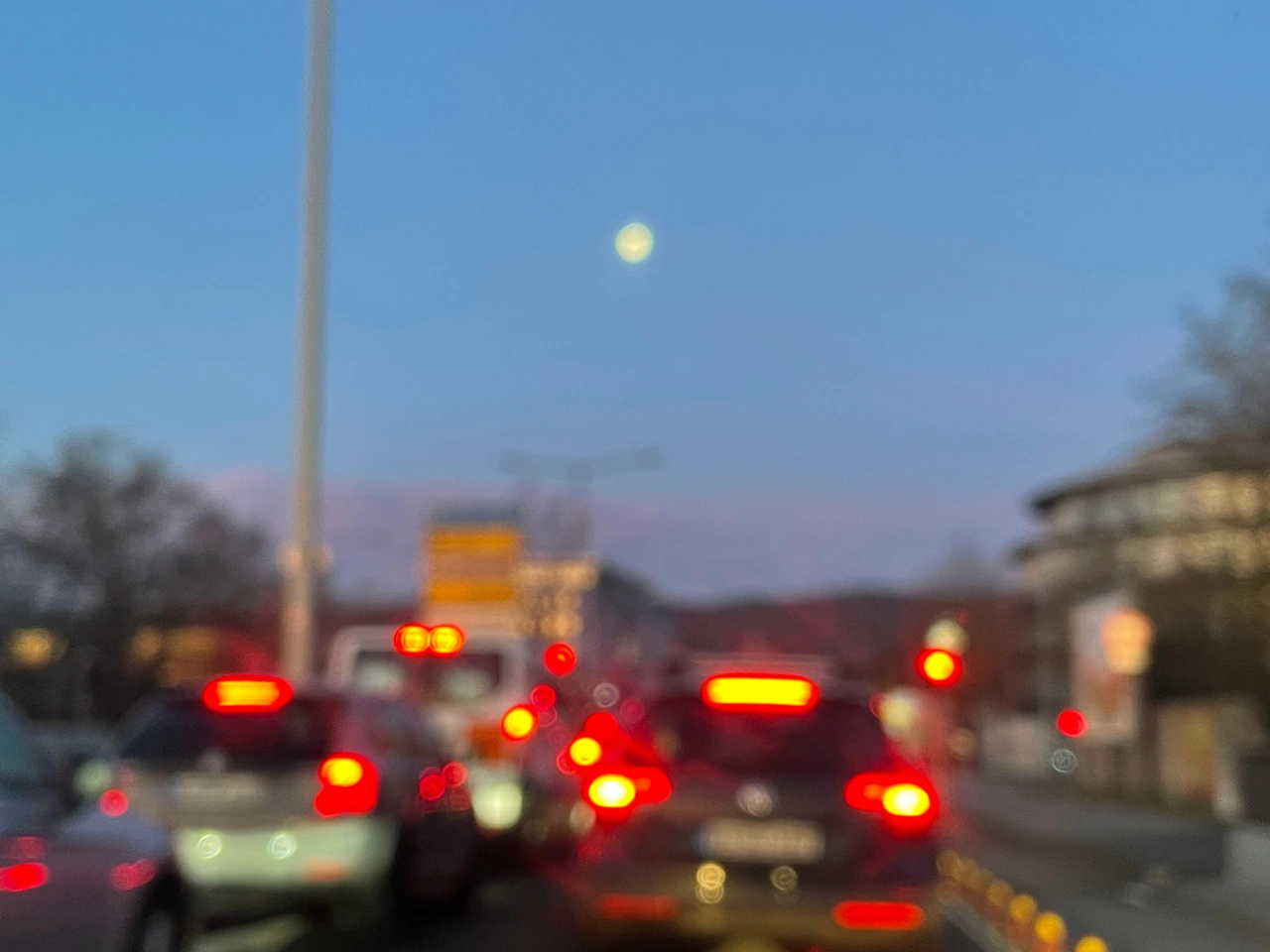 아침 출근길 자동차 안에서 하늘 위에 뜬 둥그렇고 하얀 달을 만났다.