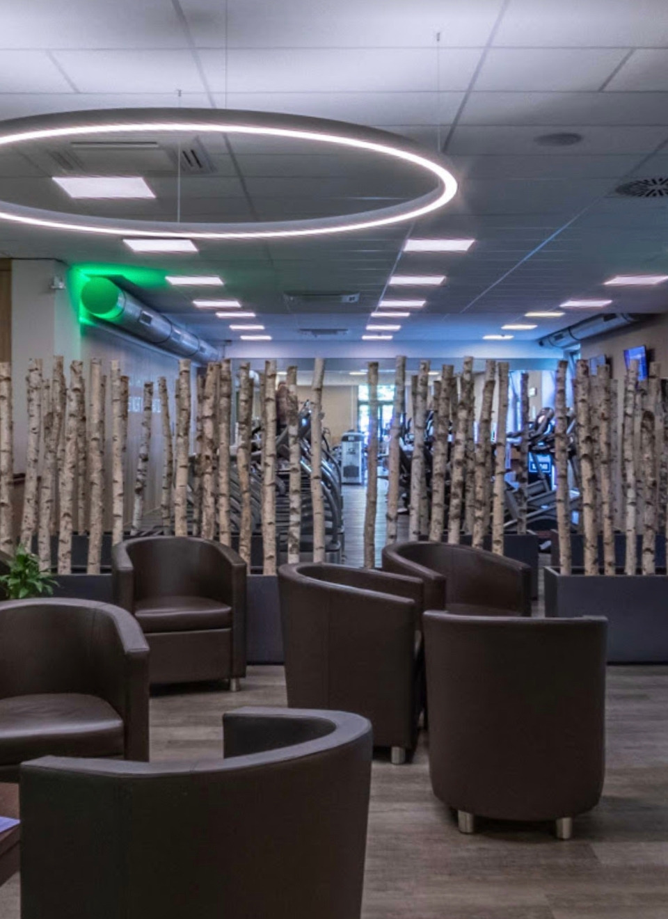 나름 인테리어로 멋진 공간을 구상한 것이겠으나 그렇게 다 들여다 보이고 특히나 그 앞쪽에 카페처럼 테이블과 의자가 놓여있어 커피 마시며 남 운동 하는 것을 보게 되어 있어서 민망한 구조가 아닐 수 없었다