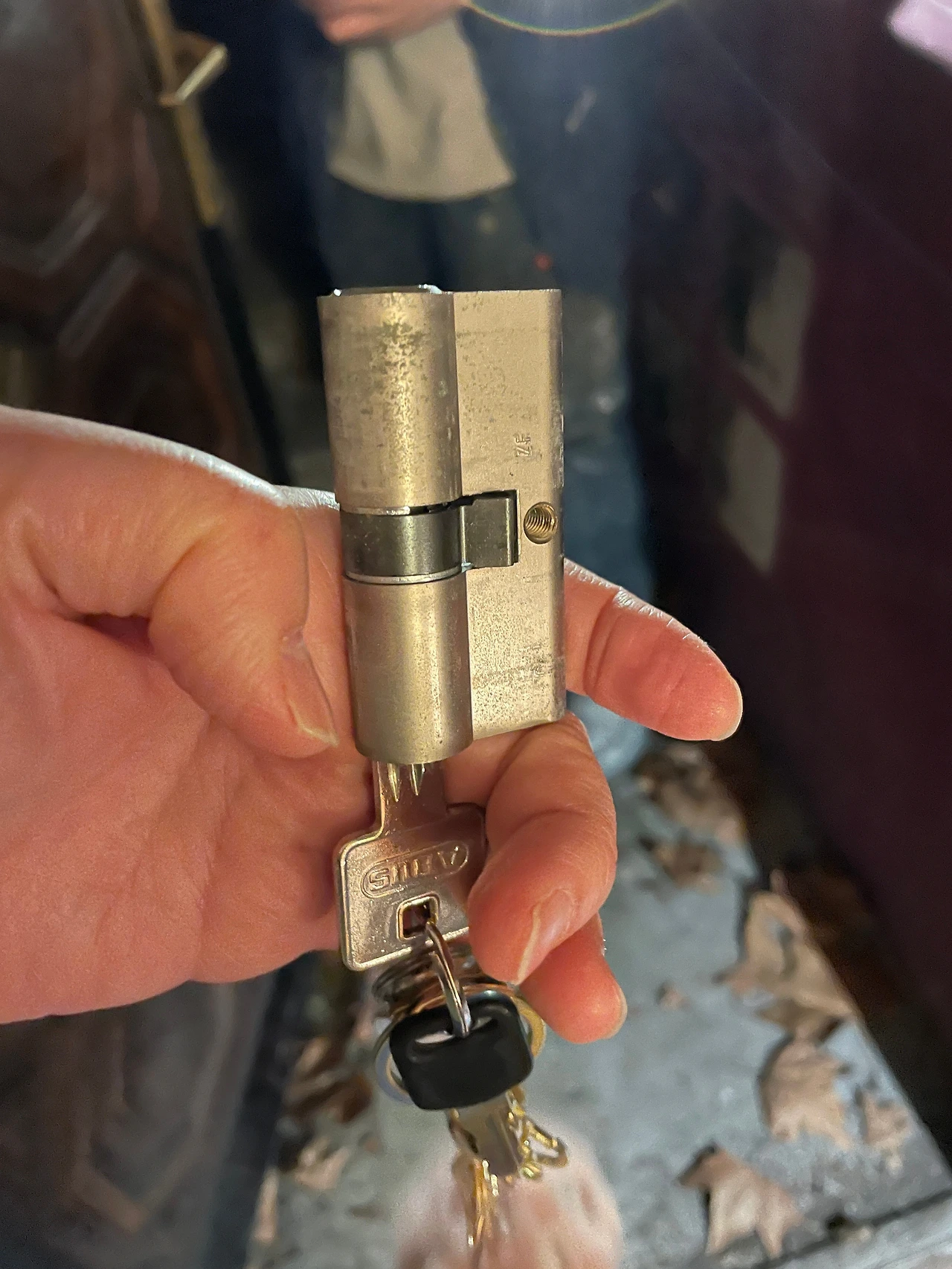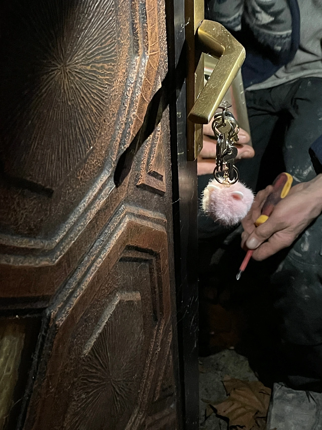 아저씨는 날랜 솜씨로 드라이버 하나 들고 열쇠통을 문에서 꺼내고 새로운 열쇠통으로 바꿔 넣었다.