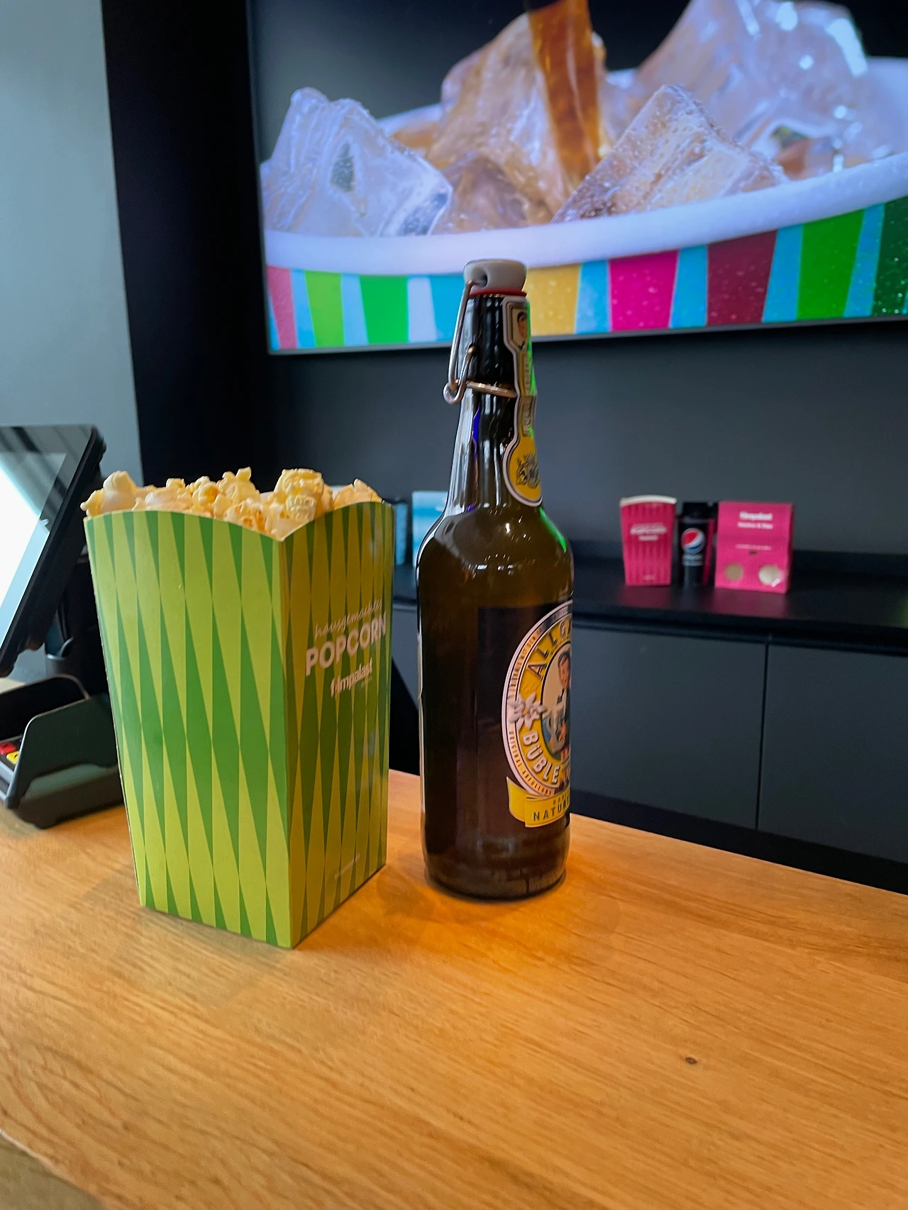 평일 오후라 텅 비어 있다시피 한 영화관 안 스낵코너에서 줄도 서지 않고 바로 팝콘과 맥주를 받았다.