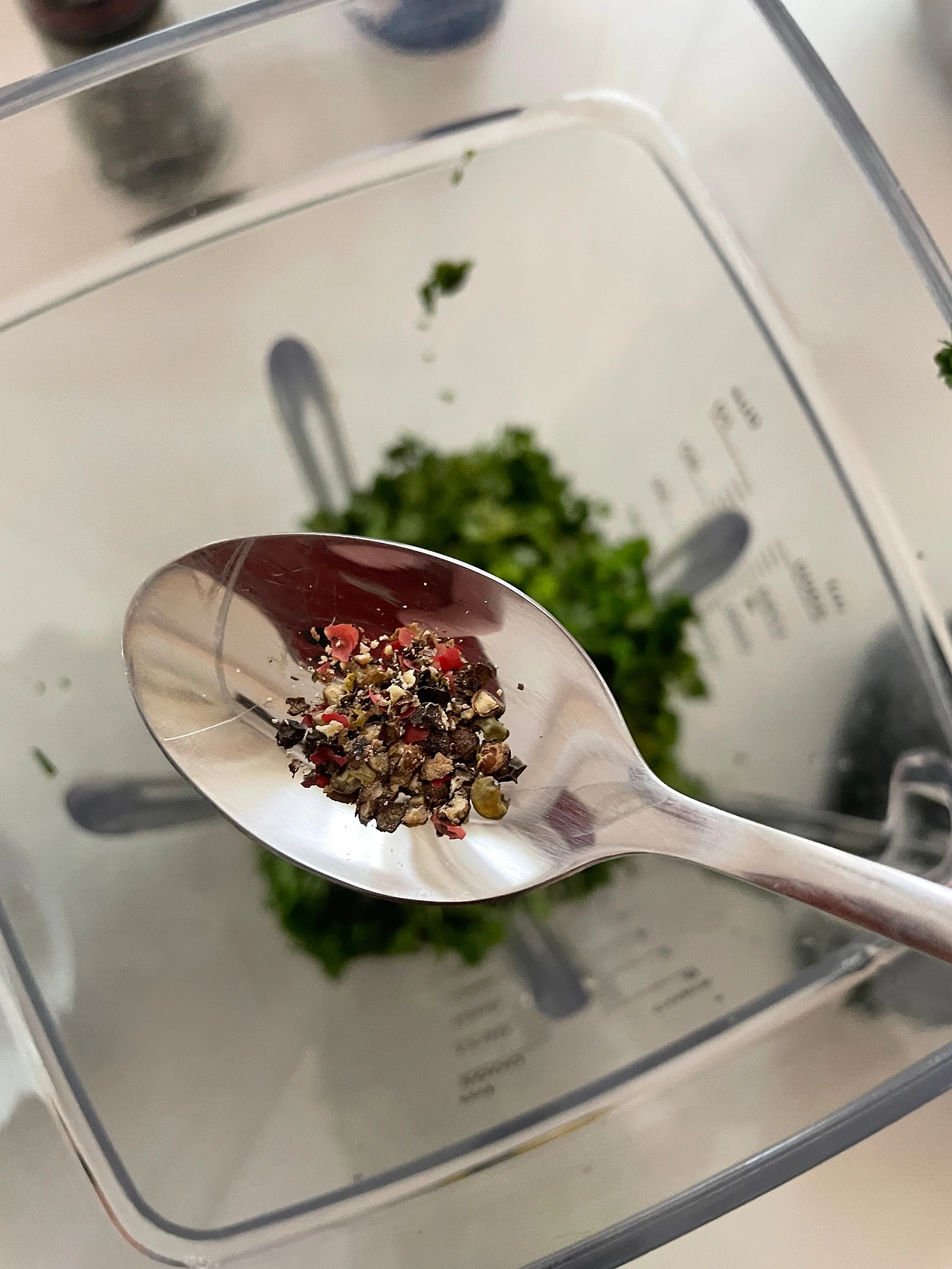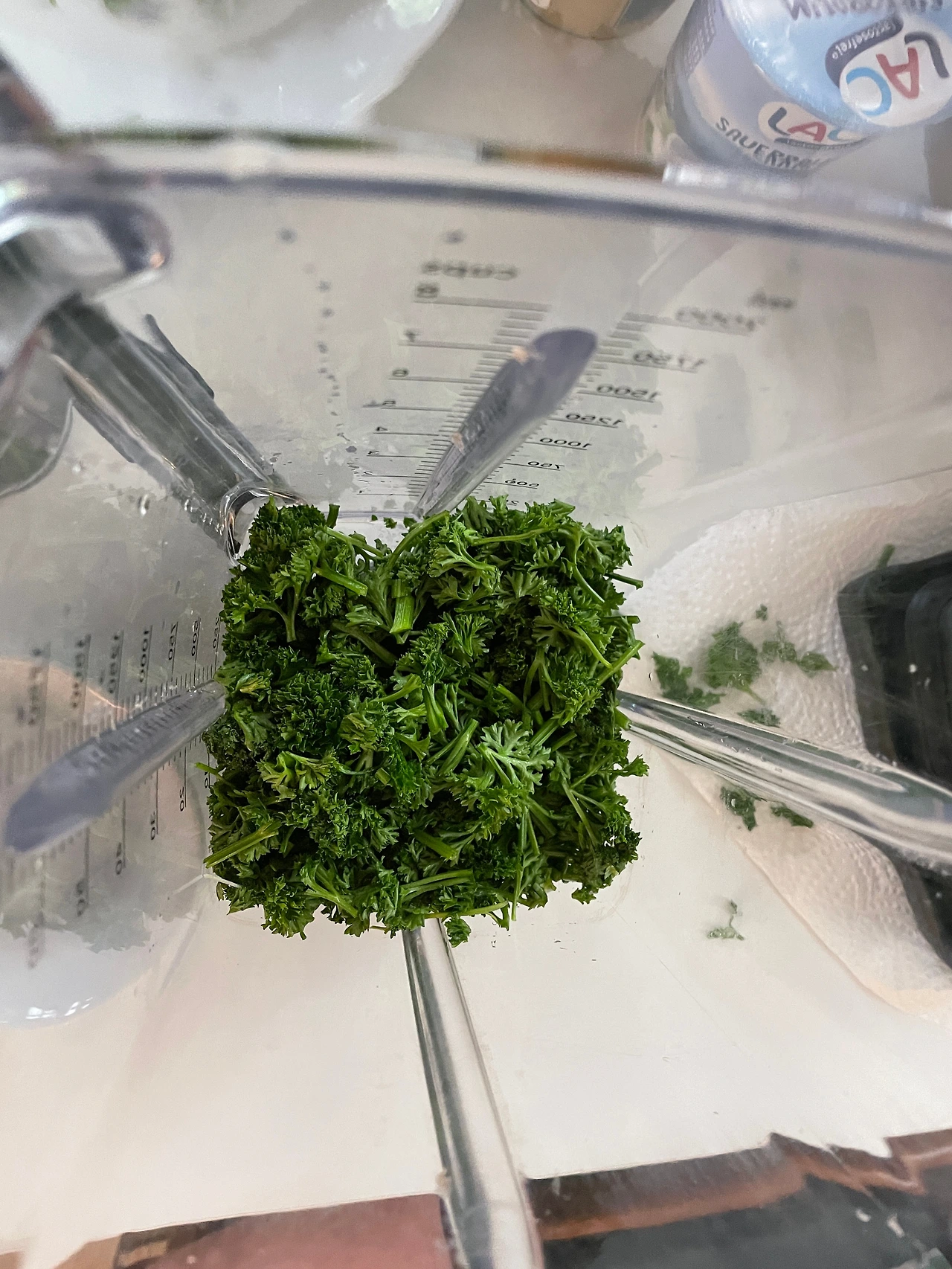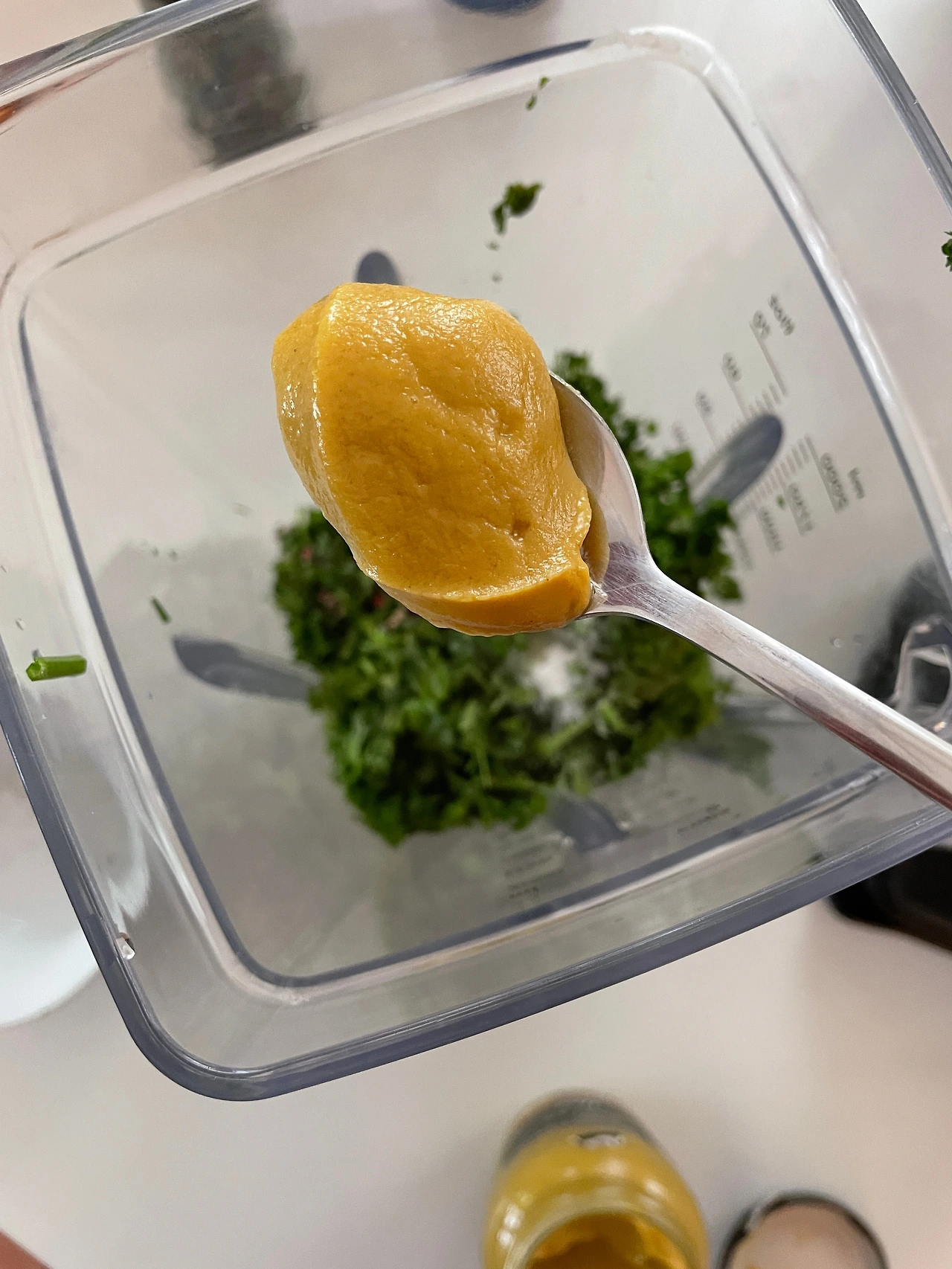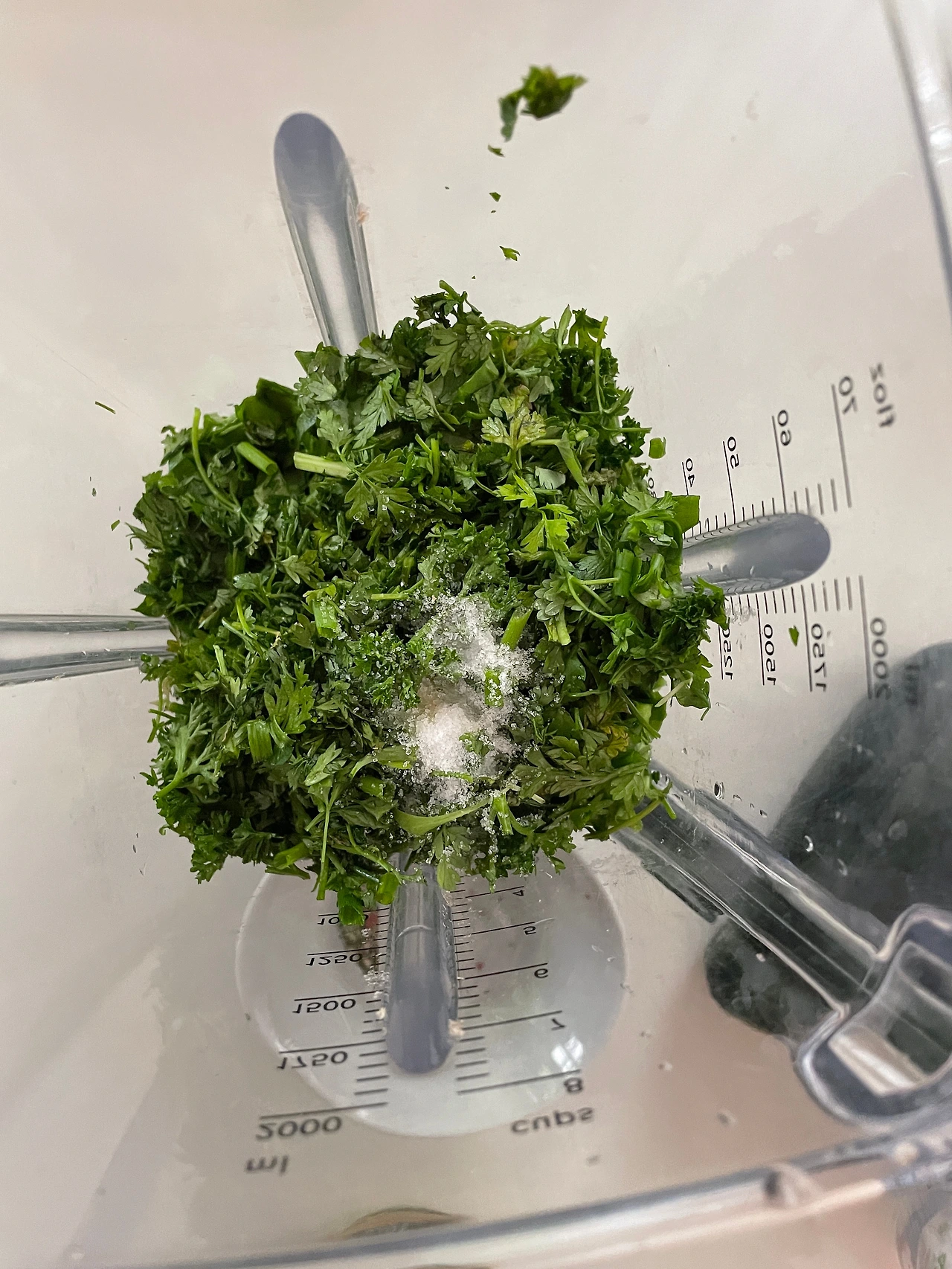 (*그러나 취향에 따라 소스를 조금 꾸덕하게 드시고 싶은 분들은 허브들을 더 잘게 자르고 물 없이 분량의 재료들과 함께 돌리시면 됩니다)