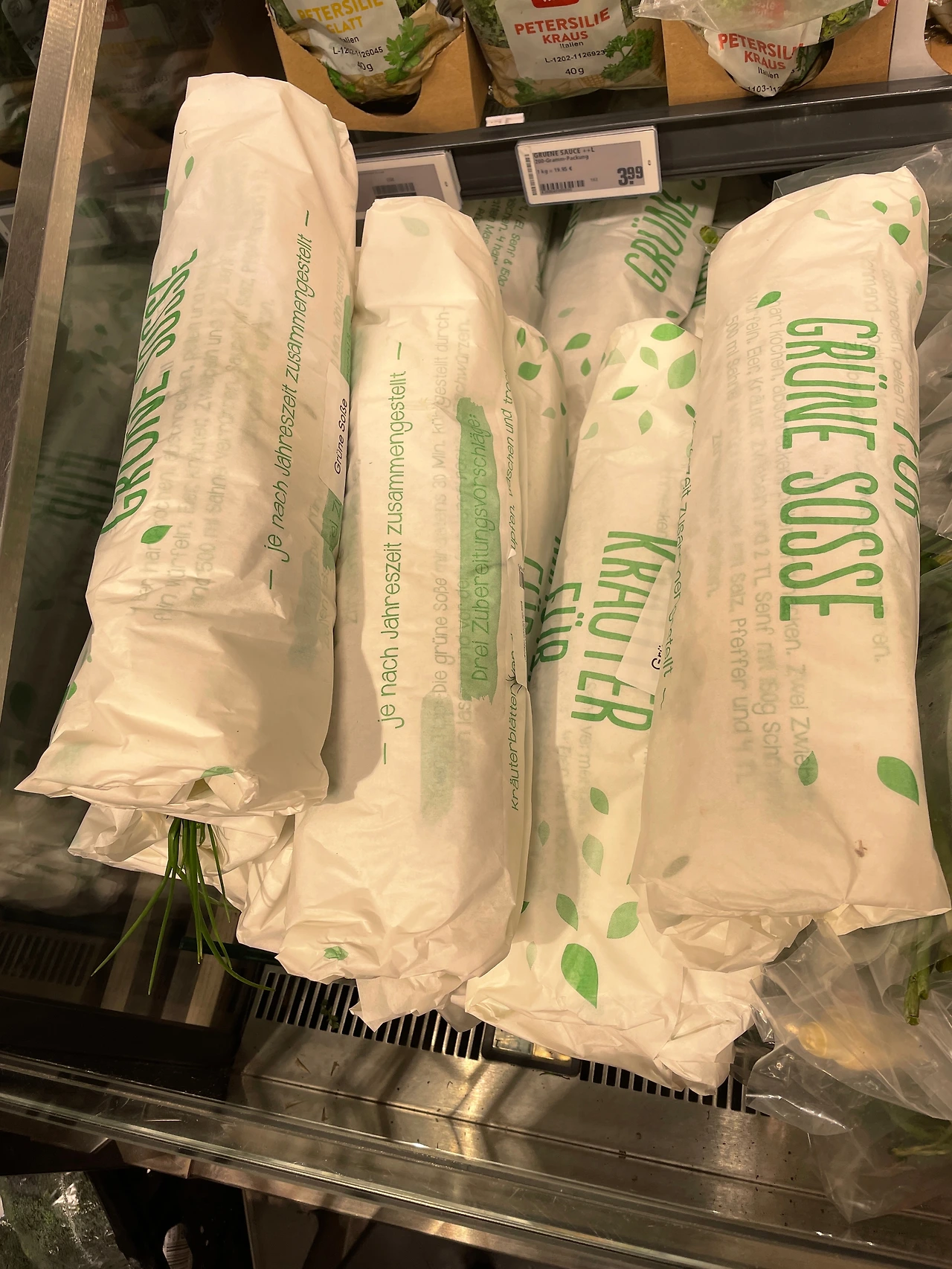 독일에서 이맘때(부활절 전후) 장에 가면 저렇게 종이봉투에 담아? 아니 말아 그린소스용 허브를 따로 판매한다.