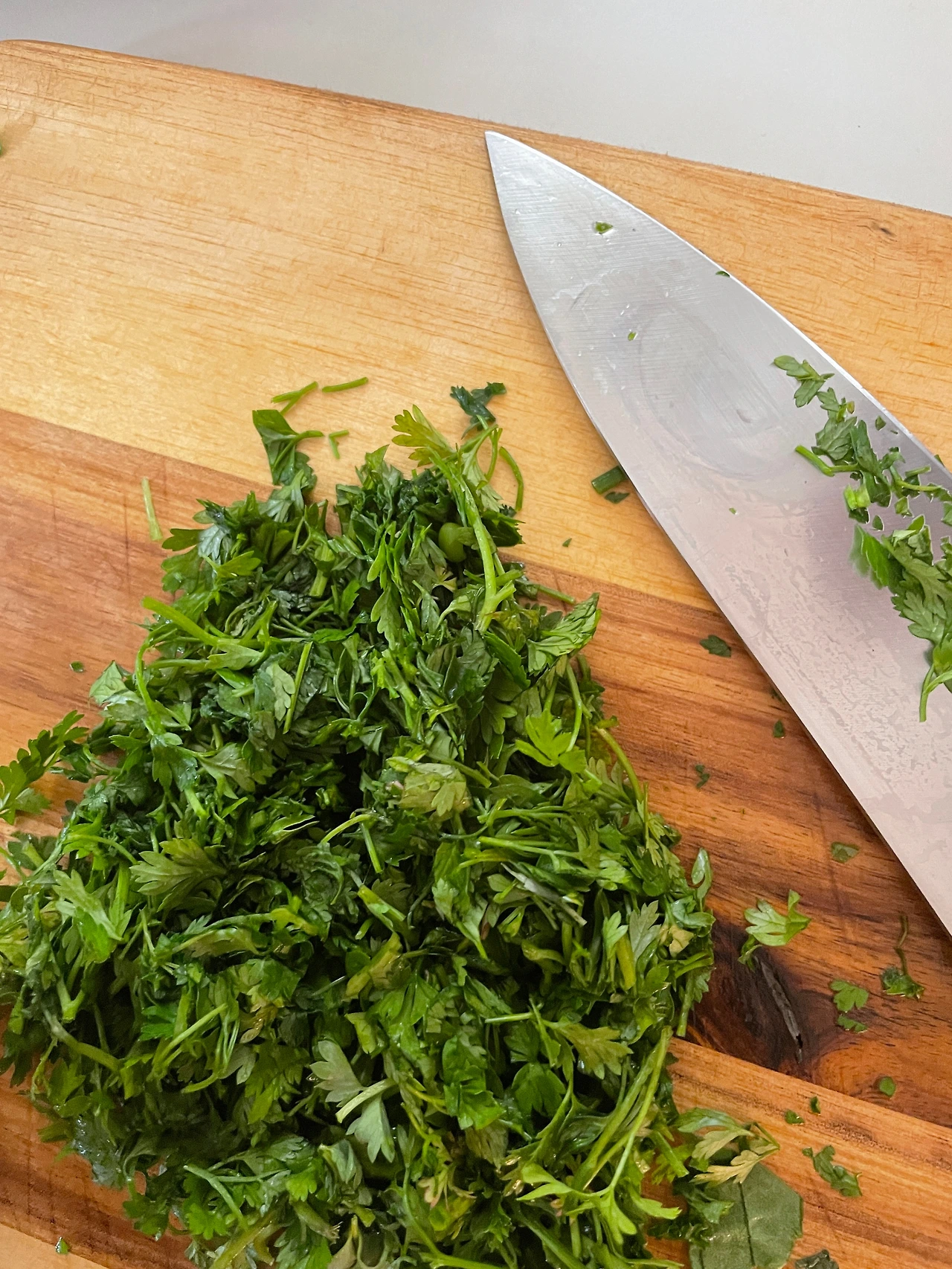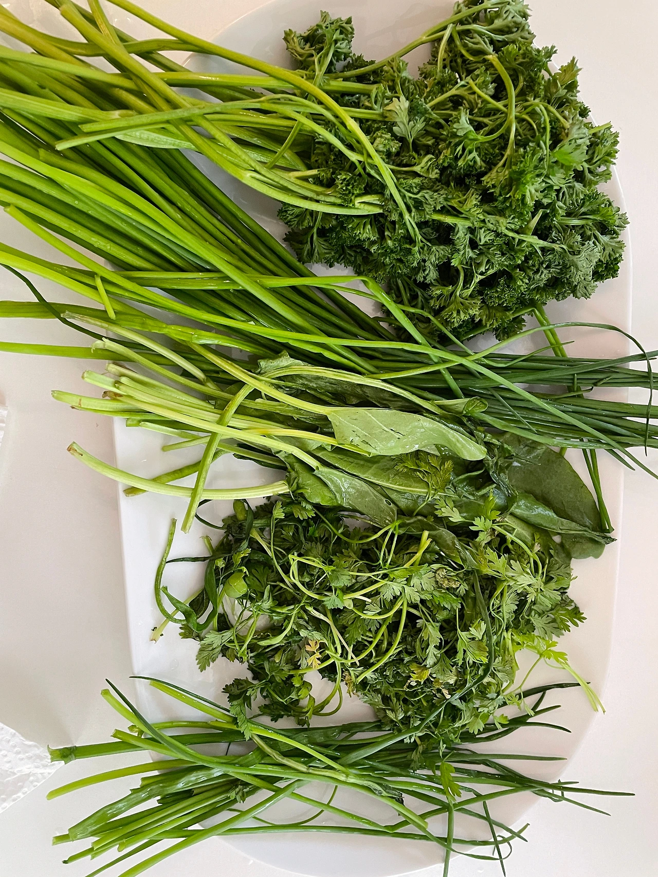 깨끗하게 씻어서 물기를 뺀 허브들을 파슬리 등 딱딱한 대가 있는 것들은 대를 자르고