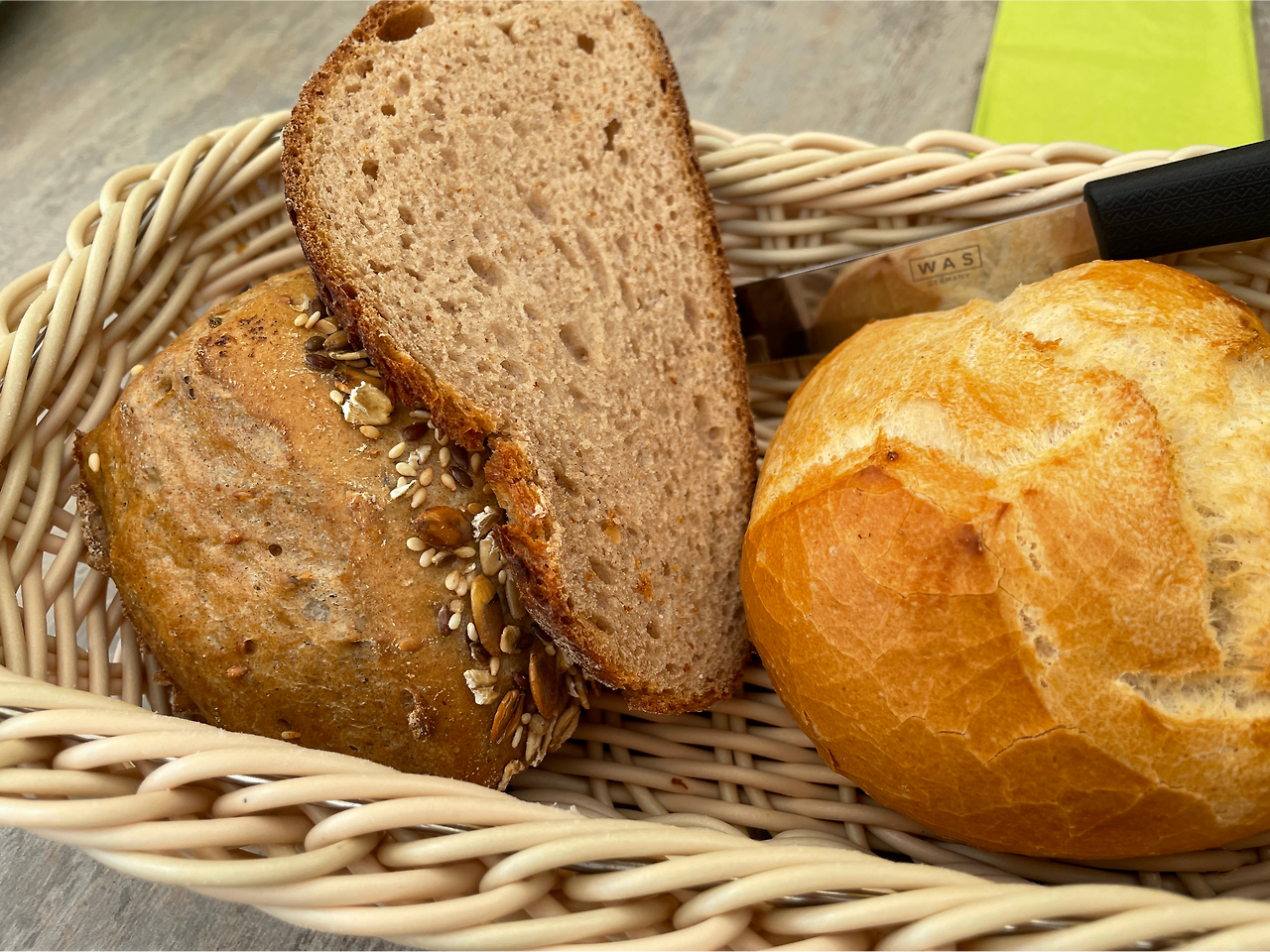 시골빵 같은 고소 하고 시큼 짭조름 한 브로트 호밀빵과 겉은 바삭하고 속은 촉촉한 작은 빵 브뢰첸