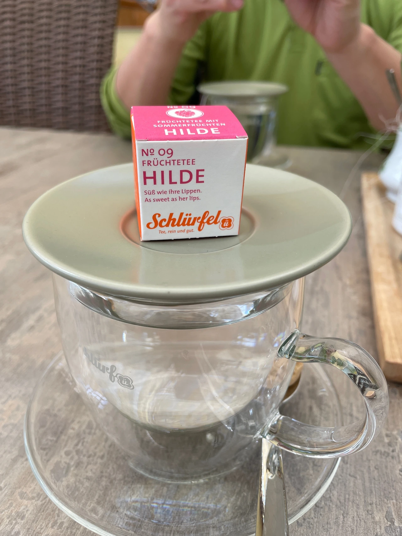 그녀가 가져다준 녹차와 과일차는 장난감 같이 작고 귀여운 네모난 통 안에 들어가 있었다