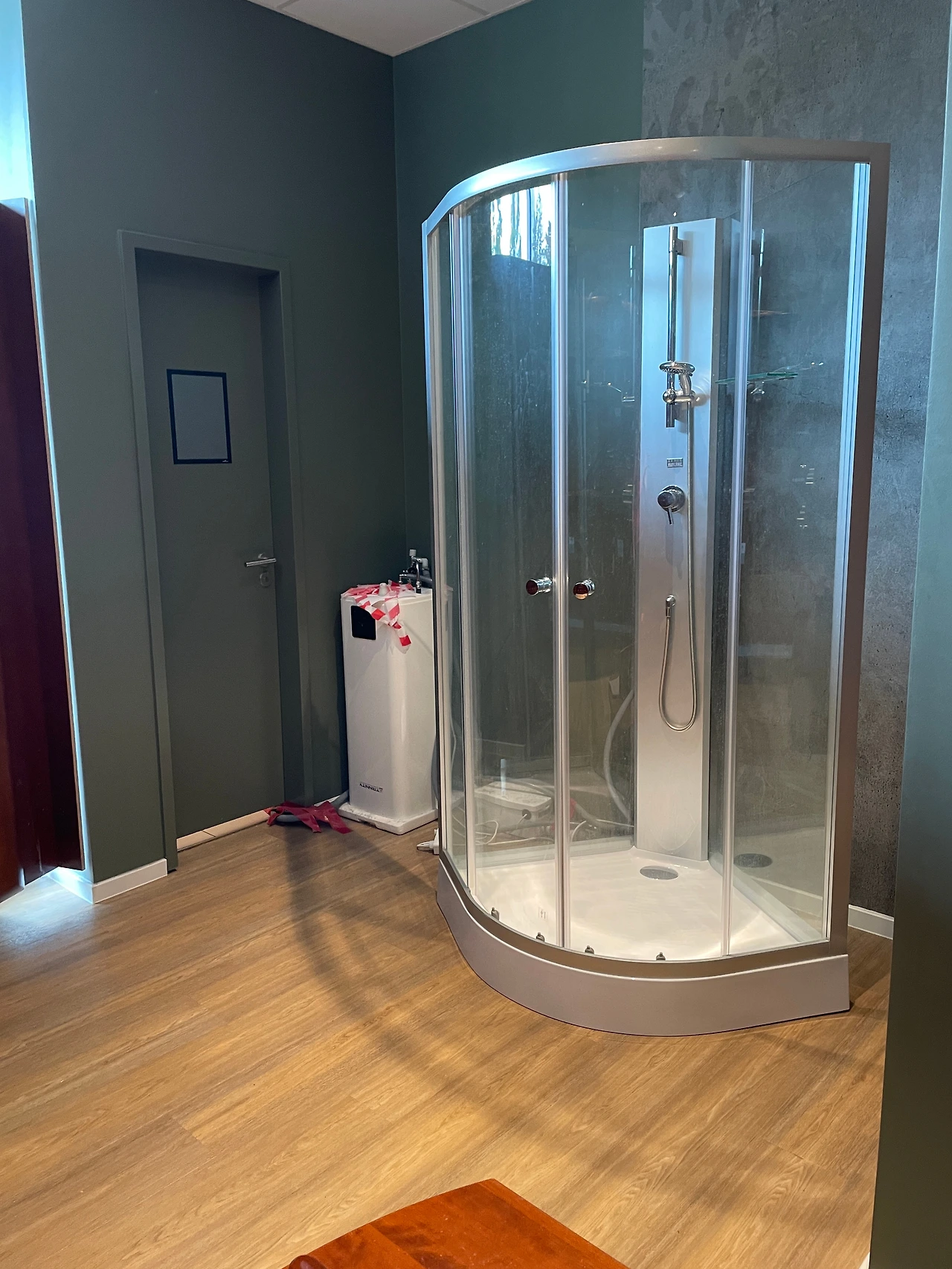 모델 하우스에 전시되어 있는 것 같은 사용한적 없어 보이는 샤워부스였다.