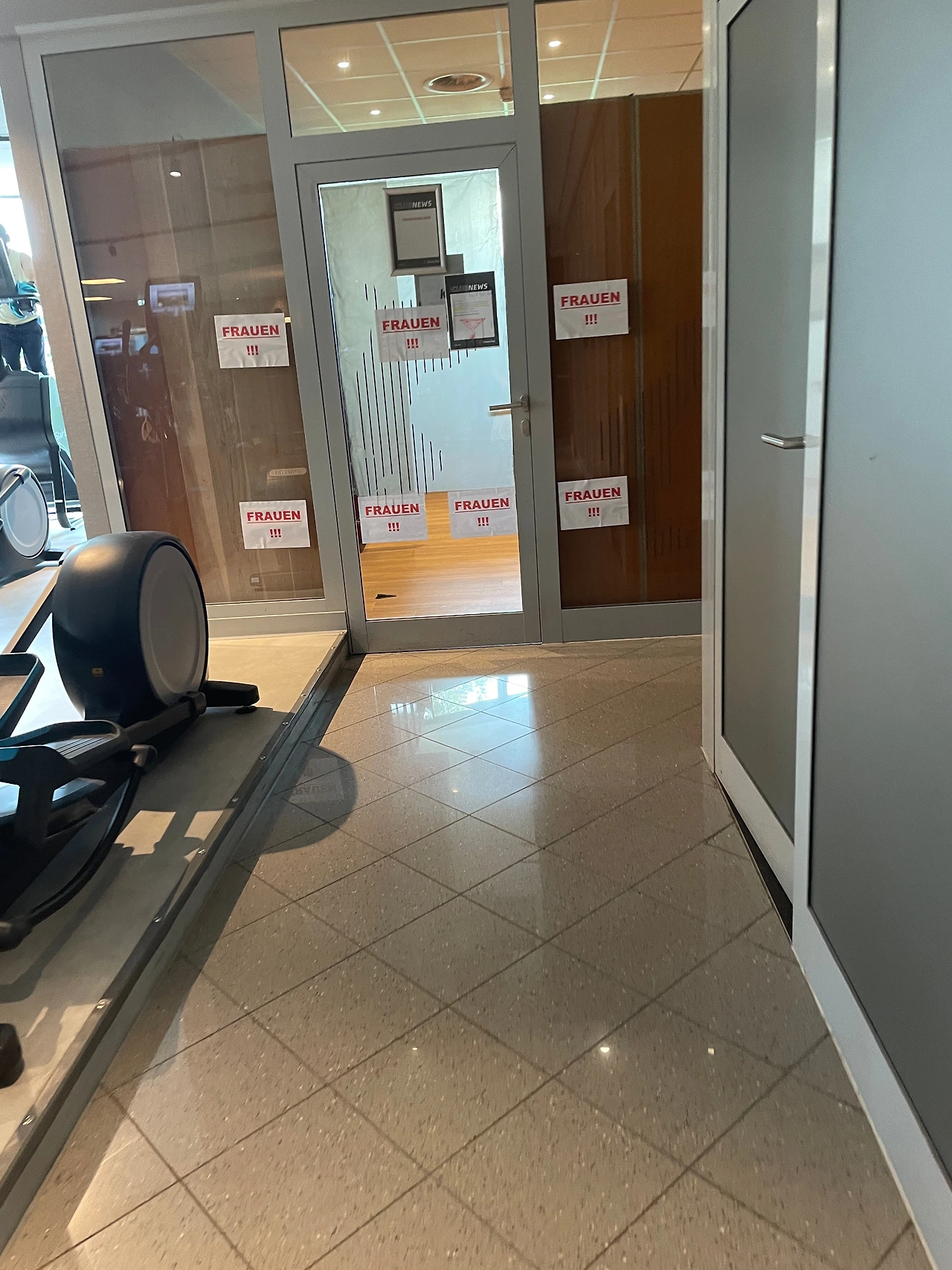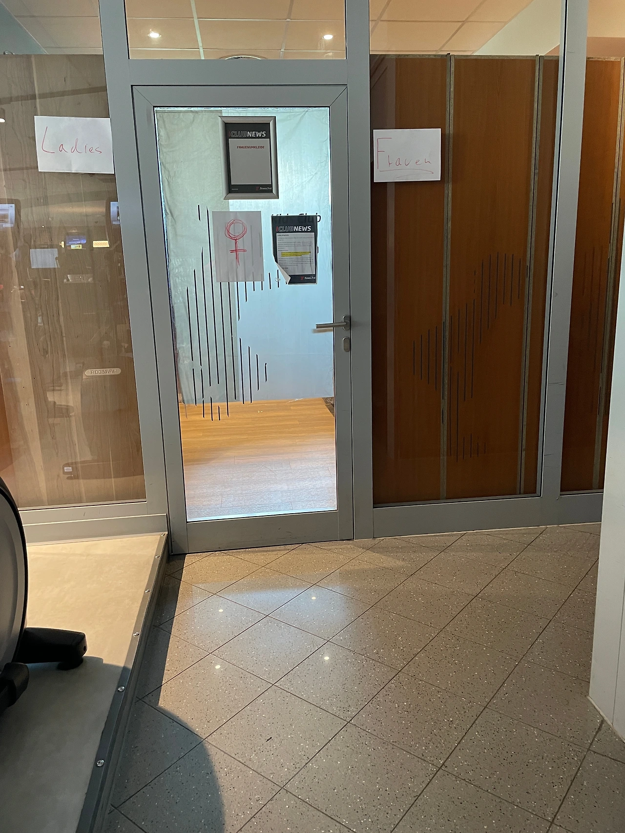다음날 임시 여자 탈의실 문짝에는 전날 생물학적 기호로만 여자 탈의실임을 알리던 것보다