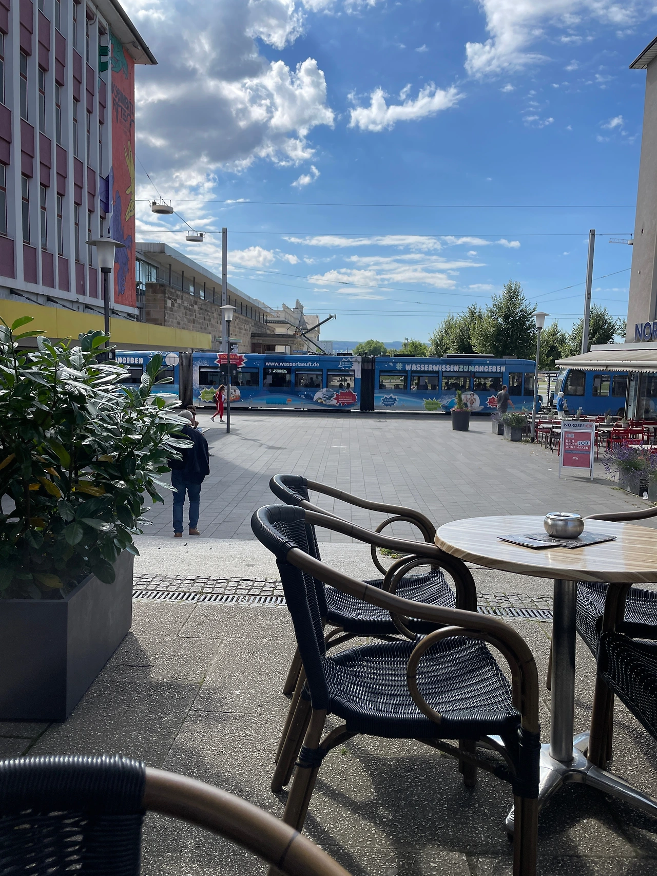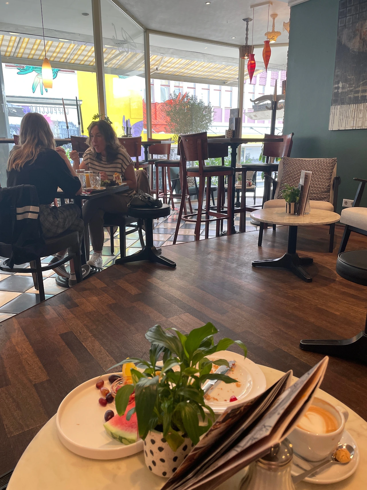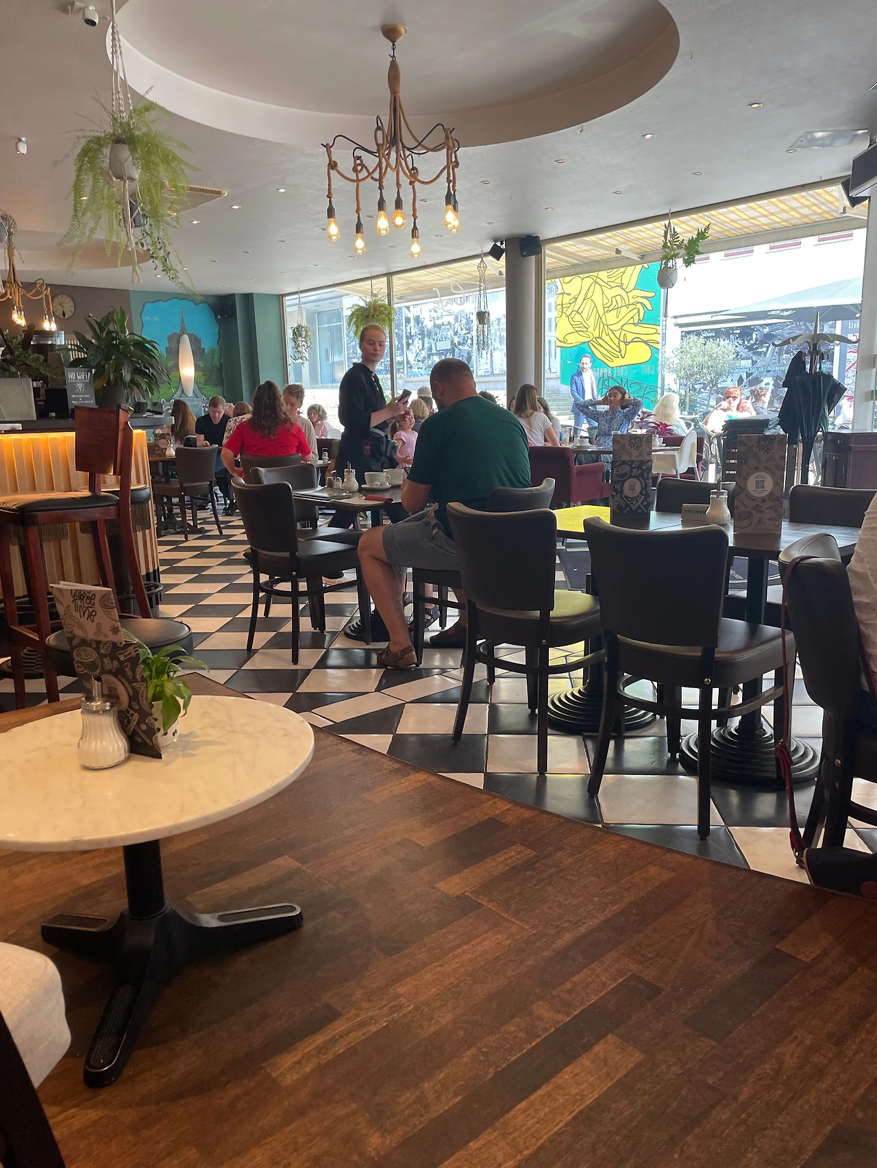 두리번거리며 노천카페에 자리를 잡고 앉으니..