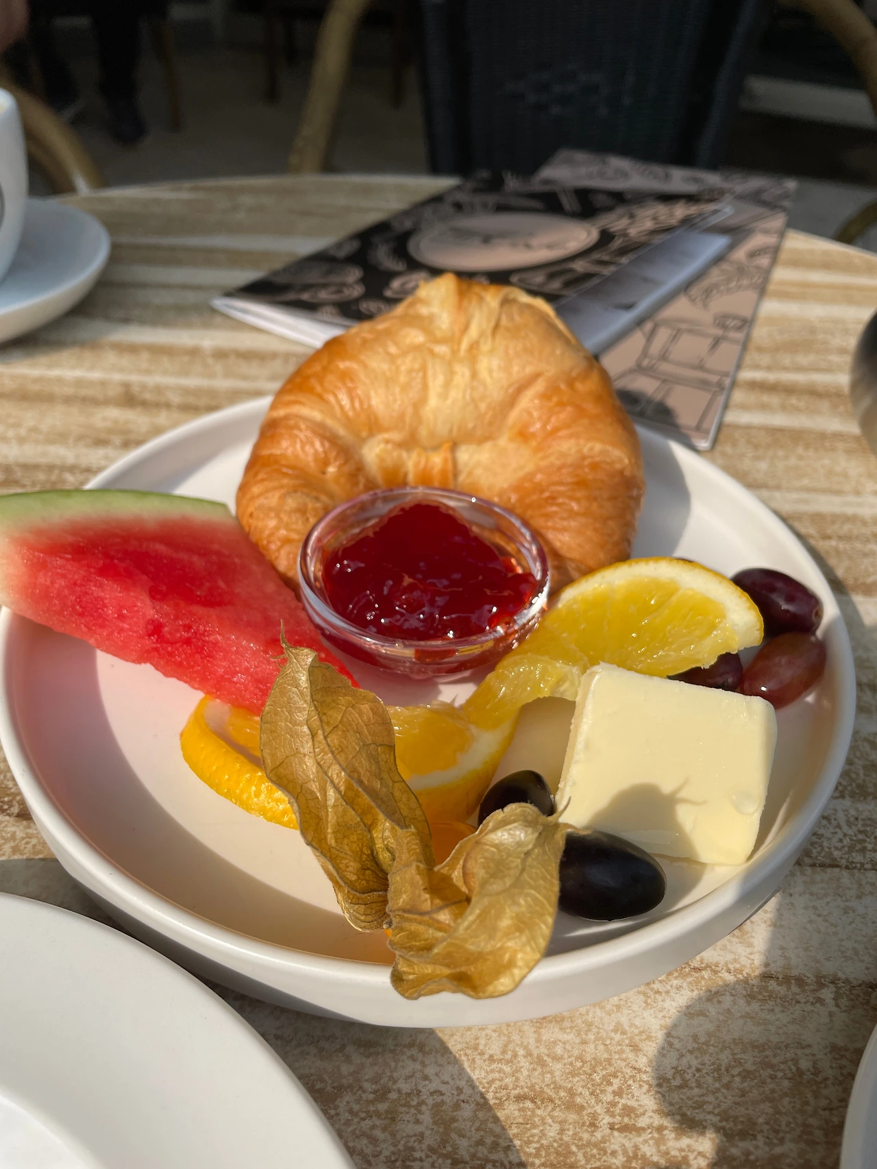 얼마 되지 않아 고소한 냄새를 솔솔 풍기는 갓 구운 크로와상과 과일이 예쁘게