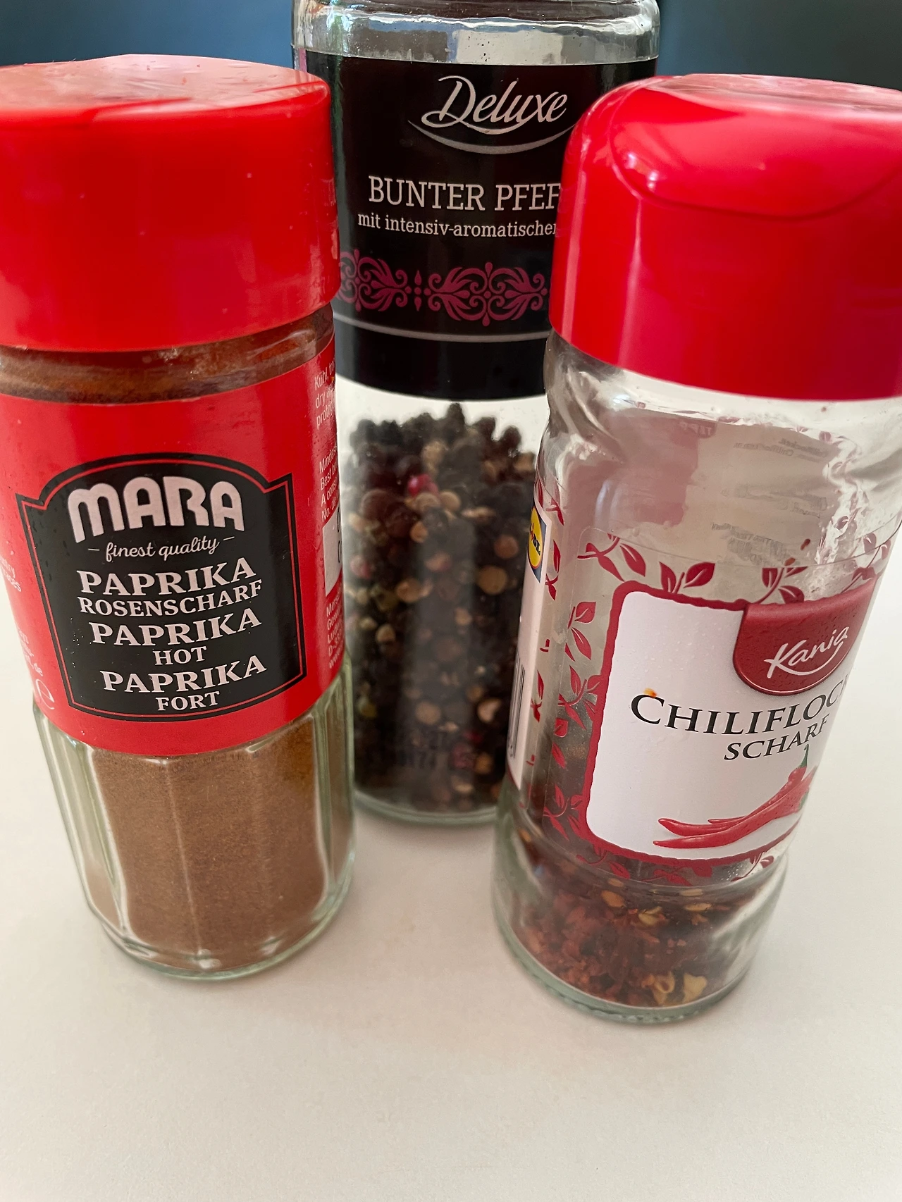 이때 **파프리카 파우더와 칠리 파우더를 넣고 마지막 간을 봅니다. (생략 또는 굵은 고춧가루 한 꼬집으로 대체 가능!)