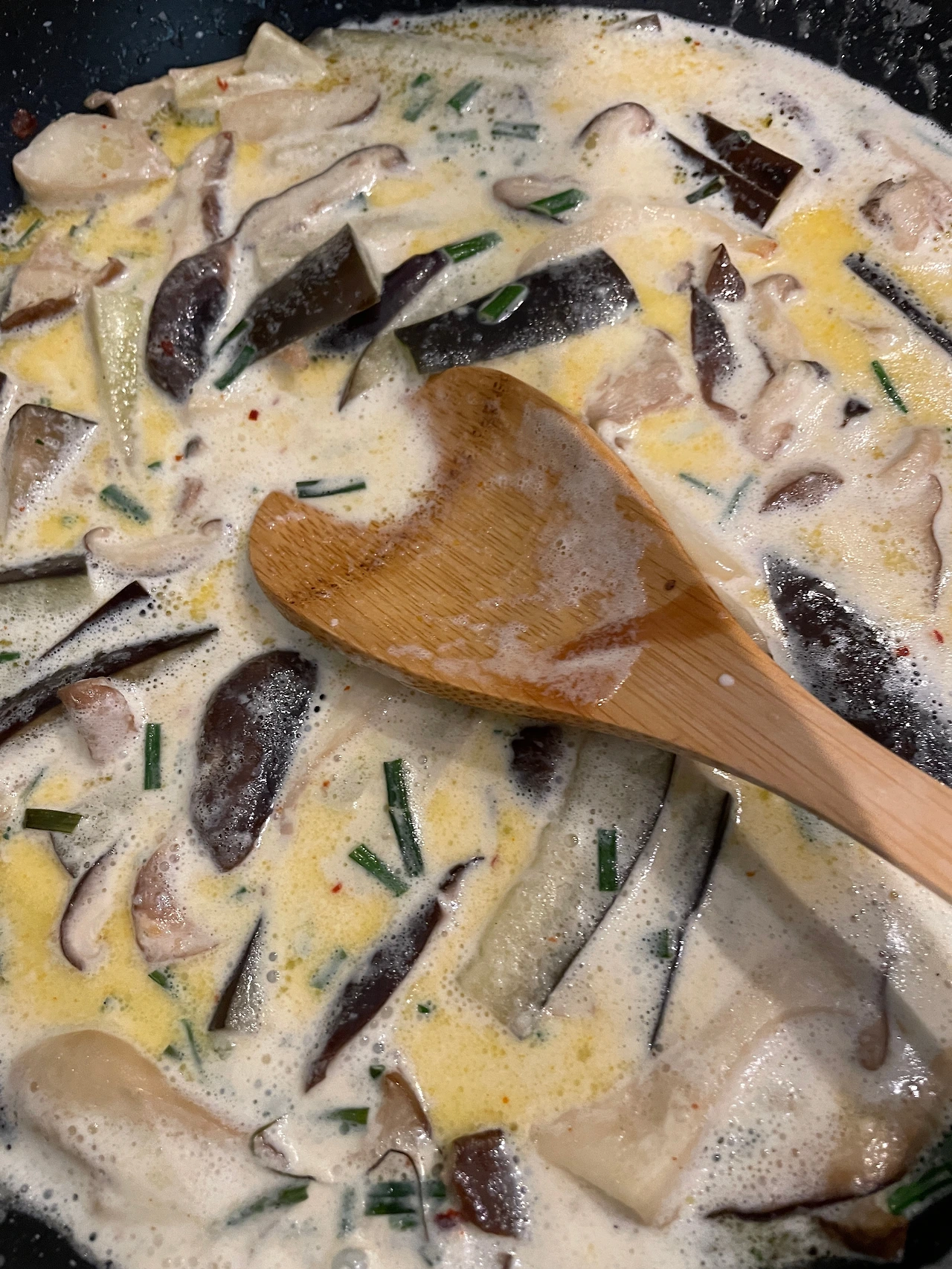 짜잔 요렇게 크림소스가 완성되고 나면 한쪽에 두고 냄비에 물을 올리고 면 삶을 준비를 합니다