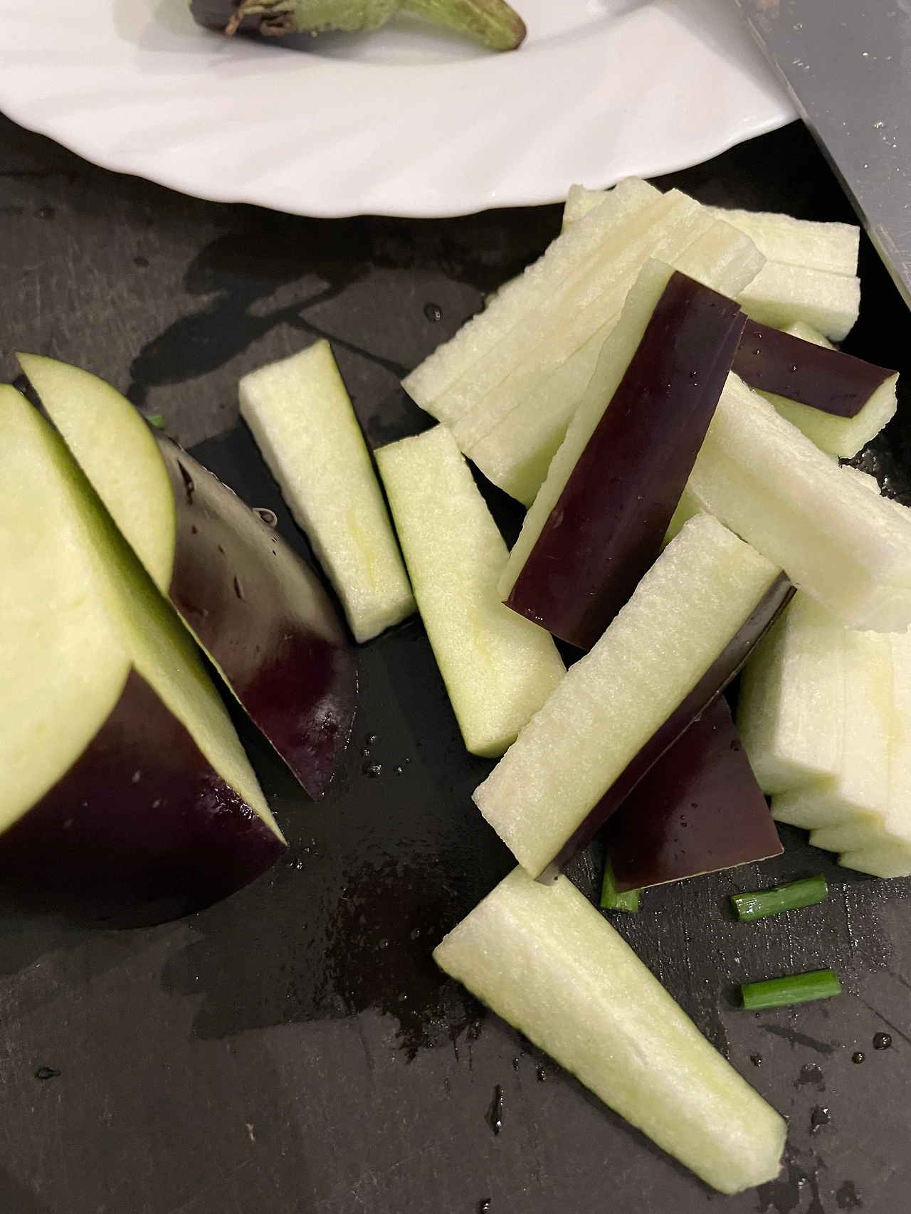 새송이 버섯과 생표고버섯 그리고 남편이 제일 좋아하는 채소 중에 하나인 짙은 자주색 가지를 담았다.