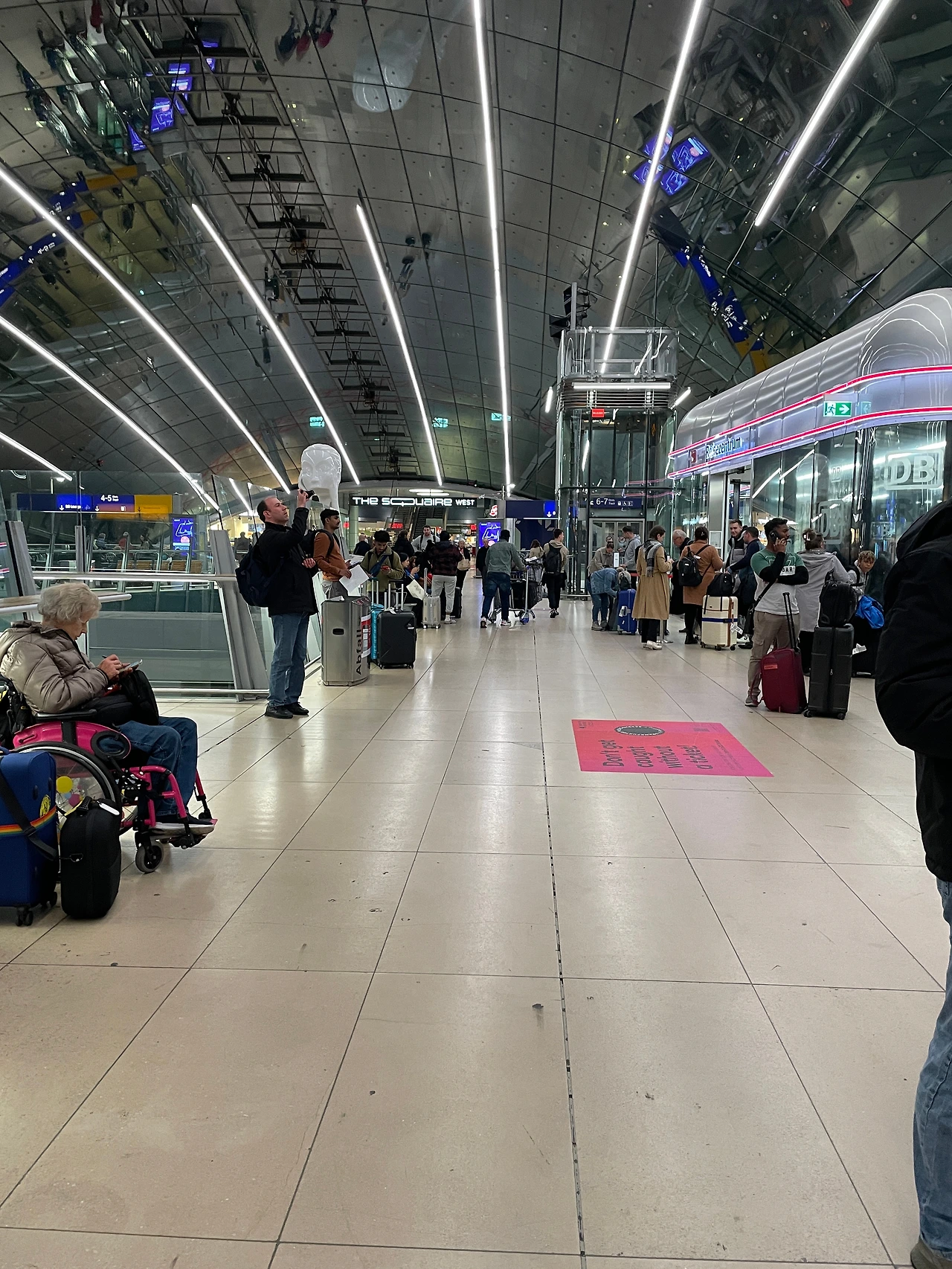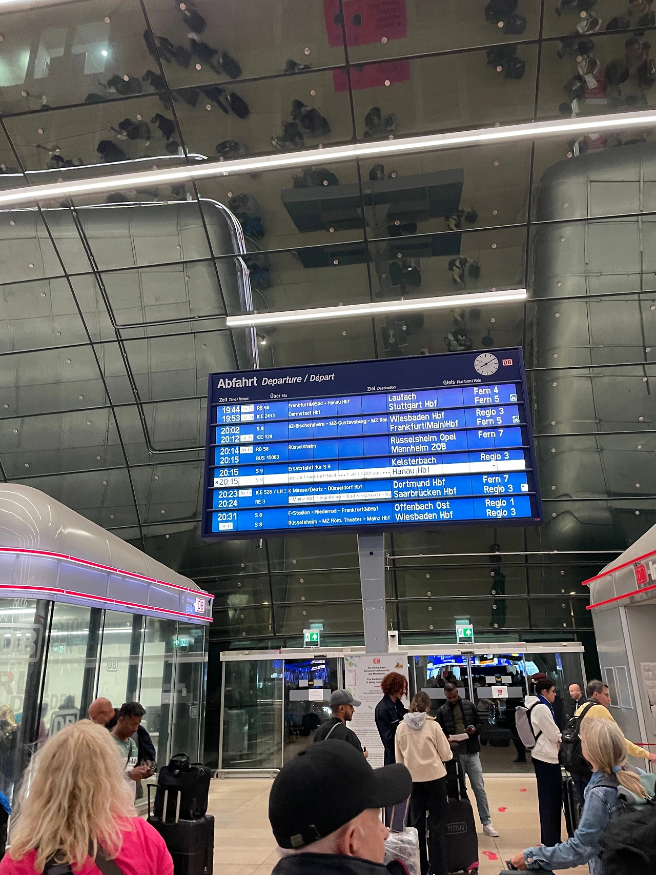 앞서 다른 이들에게도 똑같이 했던.. 기차가 켄슬 된 정확한 이유는 자기도 모르고 프랑크푸르트 중앙역으로 가면 남은 기차를 탈 수도 있고 그렇지 못할 수도 있다.