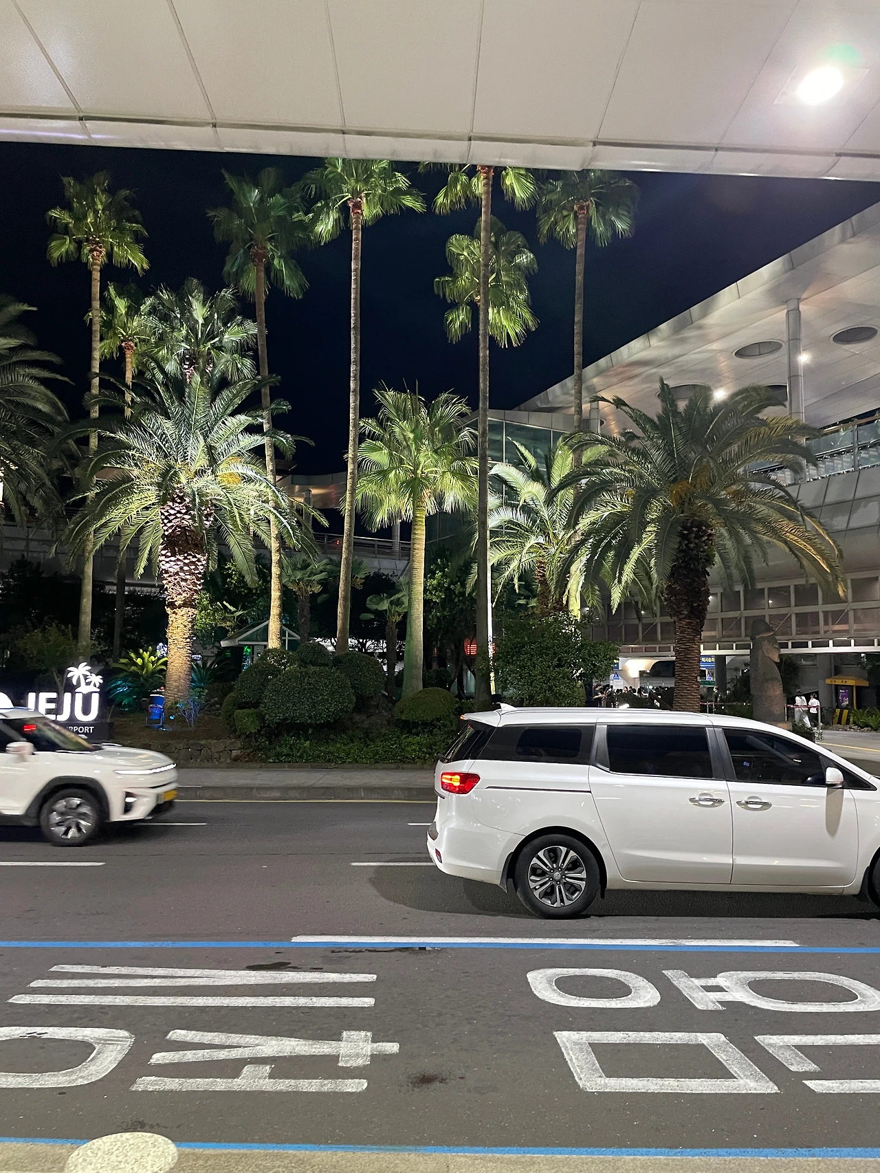 미소 지으며 우리는 야자수가 가로수인 제주공항에 도착했다